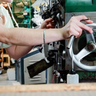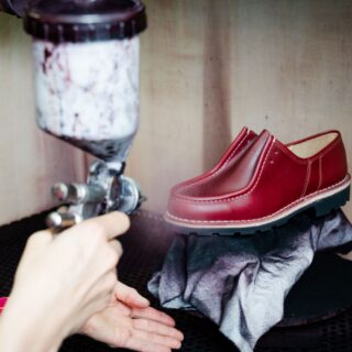 Atelier de fabrication artisanale de chaussures, selon le montage de couture double ou montage Kneipp. L'atelier existe depuis 1957 à Parthenay dans les Deux-Sèvres.