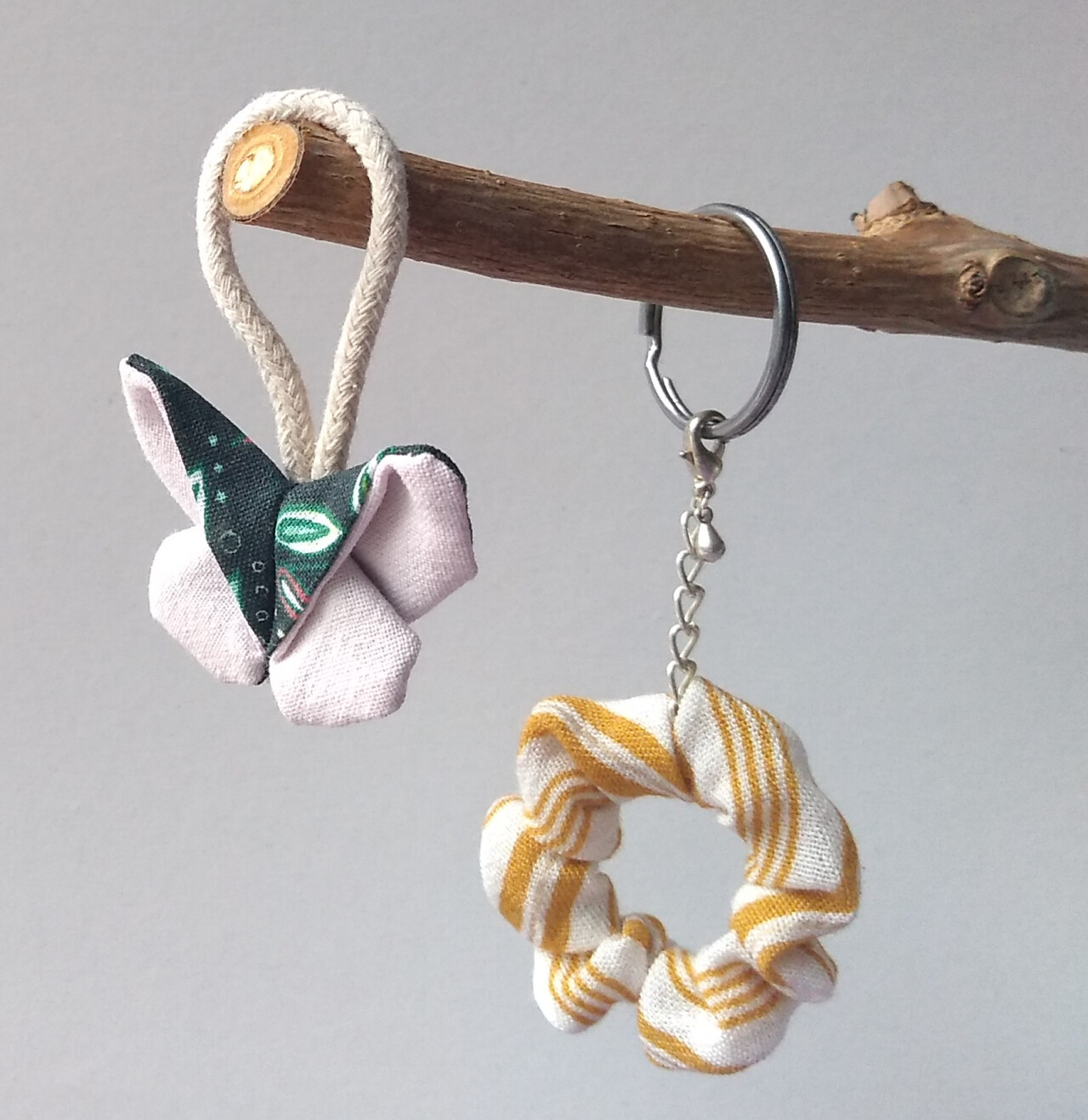 Atelier de fabrication d'accessoires : bracelets de montre, serre-têtes, bandeaux, porte-clés, pochettes, chouchous... à partir de tissus d'anciens vêtements.