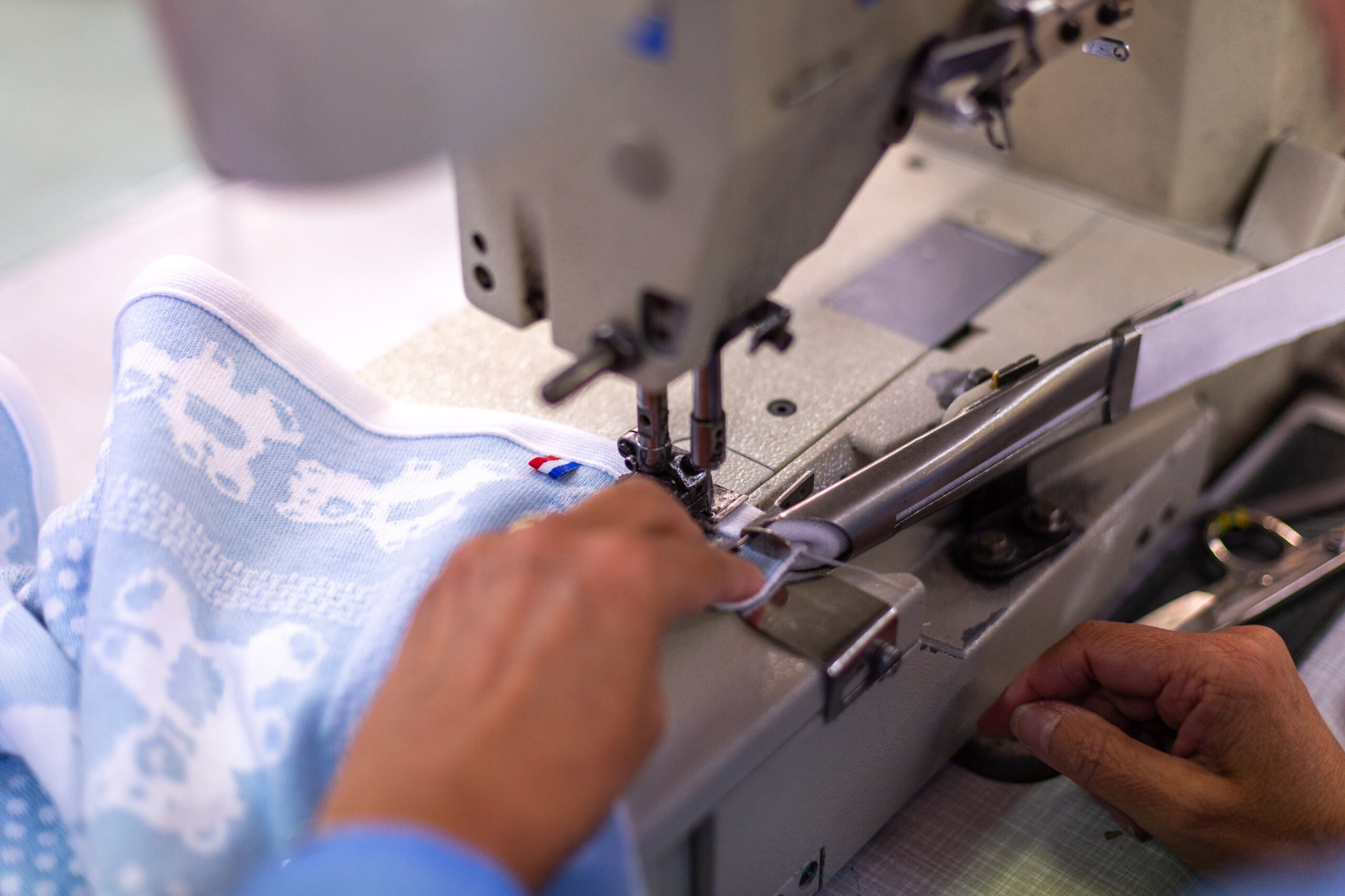 Réalisation d'ourlets et assemblage de pièces d'étoffes, en formes ou prédécoupées, permettant de produire un article fini.