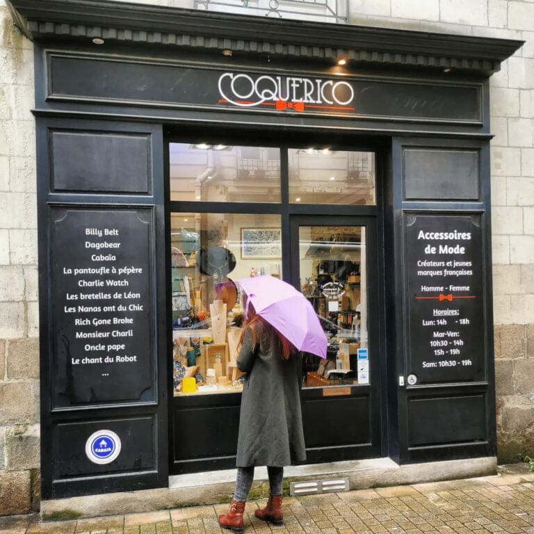 Située en plein cœur de Nantes, Coquerico propose une sélection d'accessoires de créateurs français et quelques marques qui fabriquent en France. Des marques originales et tendance, décalées et chics en grande partie distribuées en exclusivité sur Nantes.