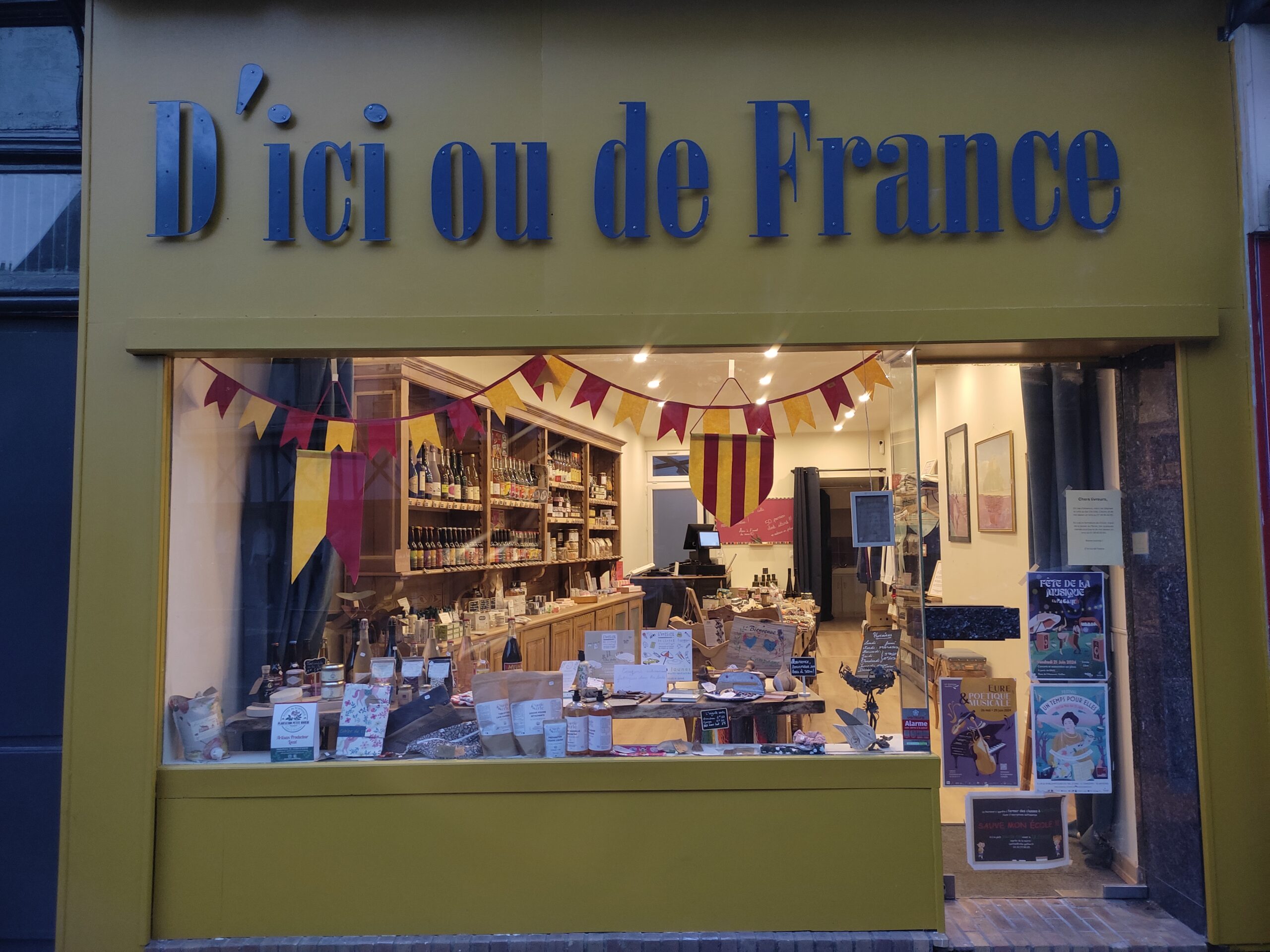 Vente de produits Made in France qui viennent d'ici (de Normandie) ou de France! Quatre rayons : épicerie (crémerie, vrac, épicerie fine / cosmétiques & hygiène / vêtements / cadeaux accessoires)