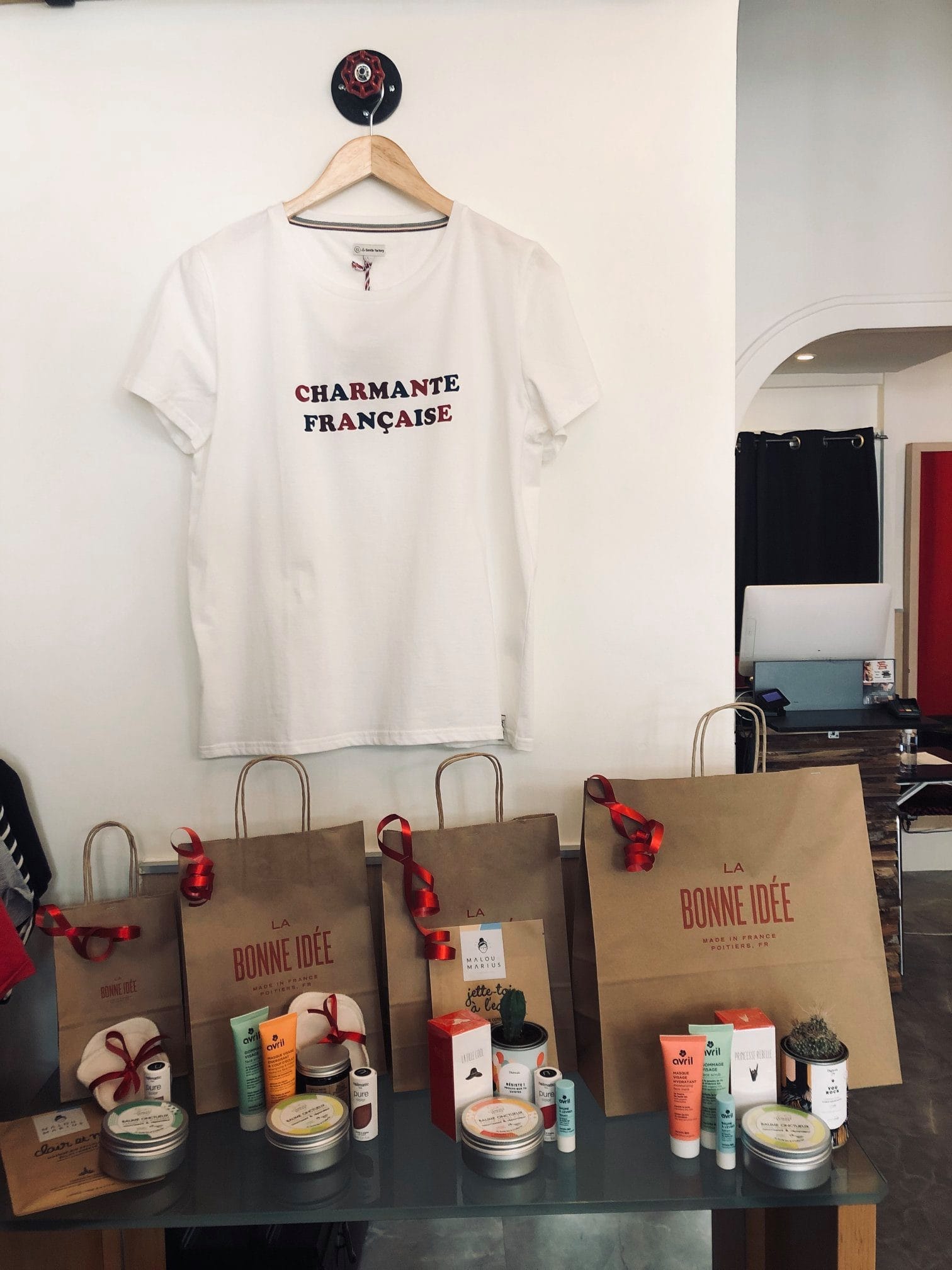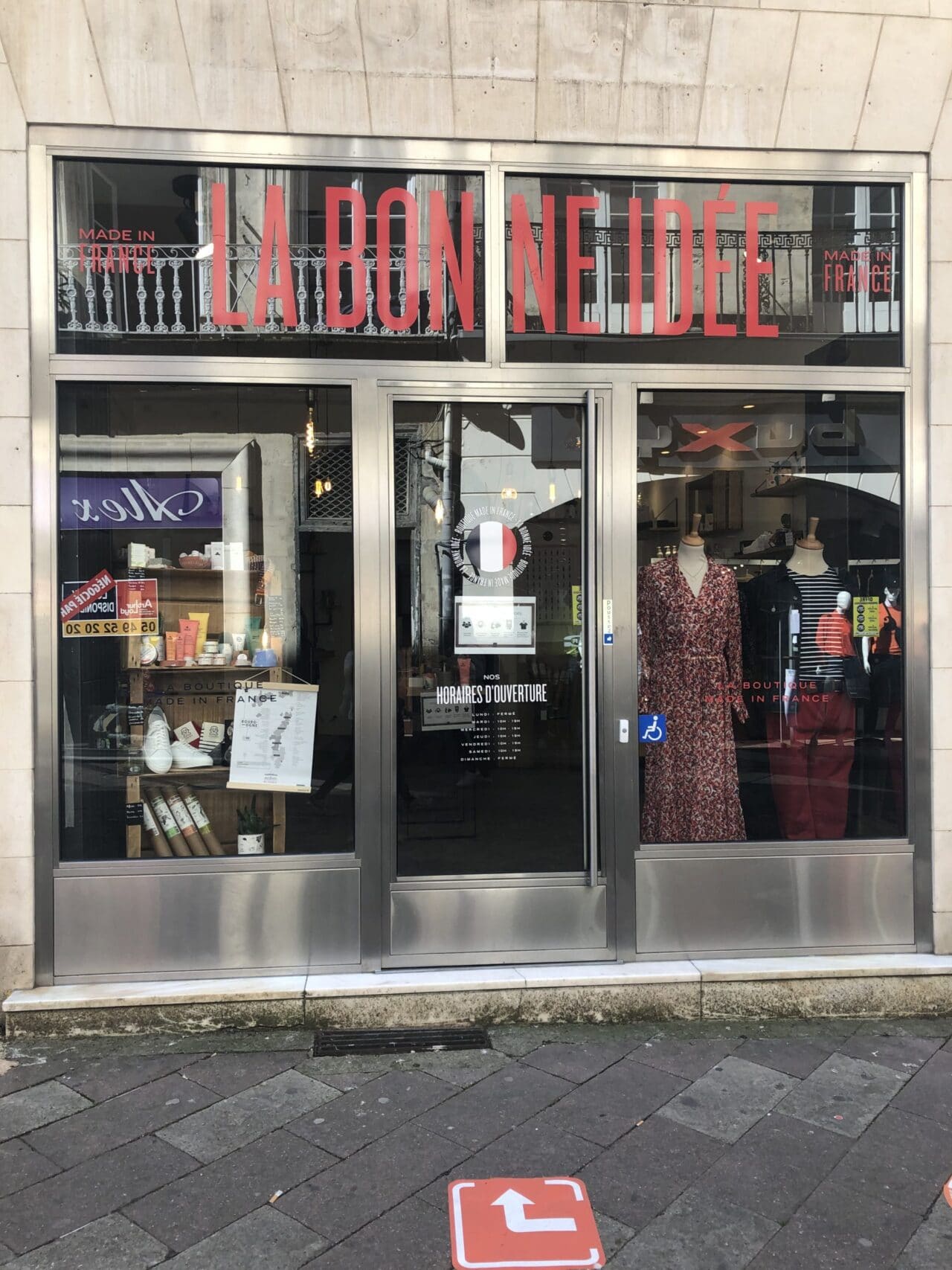 La Bonne Idée est un magasin situé dans le centre-ville de Poitiers proposant des produits fabriqués en France aussi bien en prêt-à-porter, cosmétiques et décoration. La décoration de la boutique est basée sur trois grandes idées : le bois, le métal et l'esprit récup.