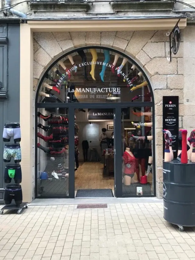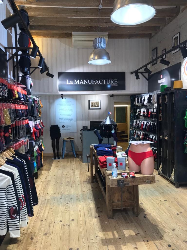 Boutique située dans le centre-ville de Nantes, à proximité de la Basilique Saint-Nicolas, et qui propose toute la gamme de produits de La Manufacture Perrin, fabricant historique de chaussettes et de collants.