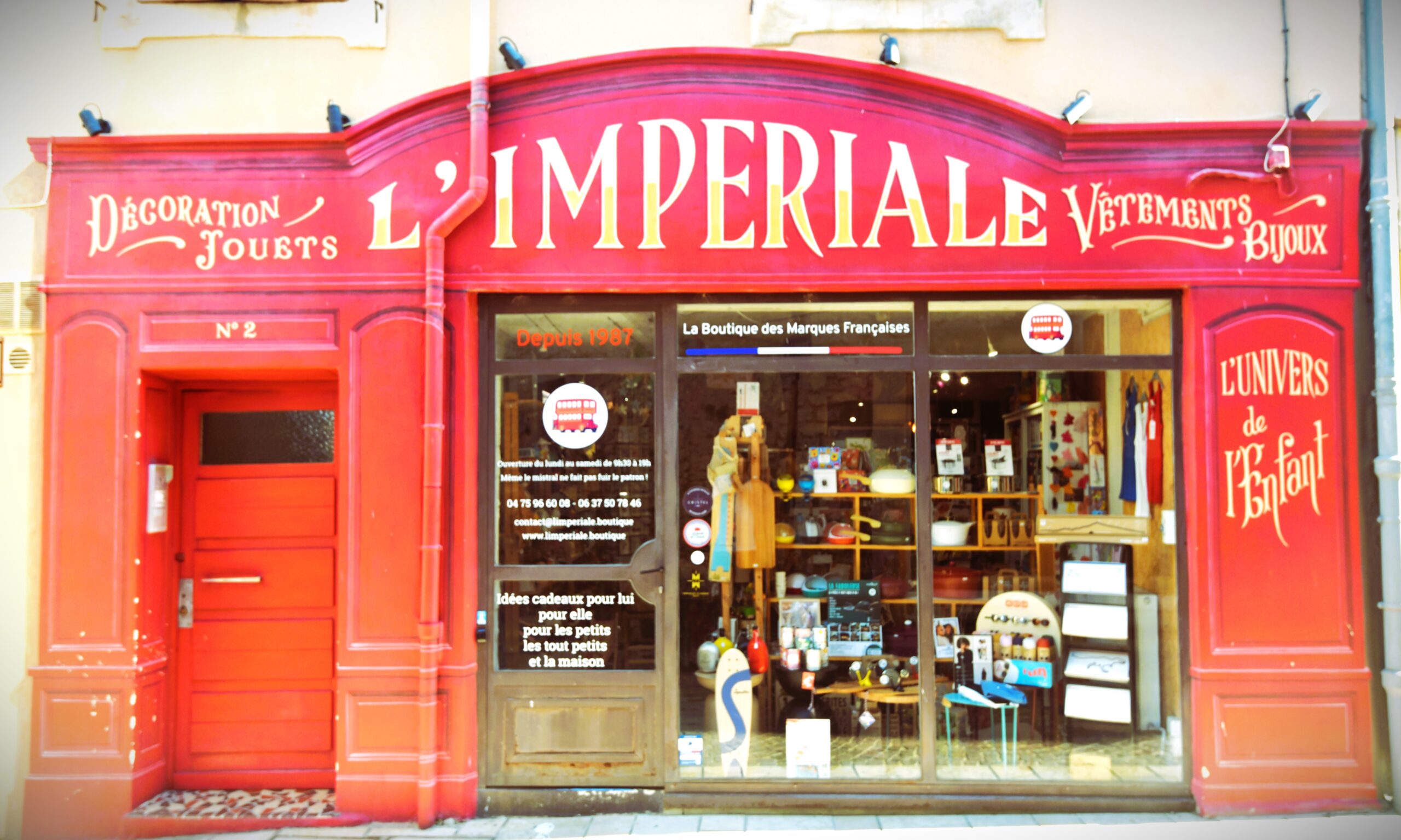L'Impériale Boutique est une institution drômoise située à Saint-Paul-Trois-Châteaux. Depuis 1987 la boutique propose des idées cadeaux dans divers univers comme le jouet, les jeux, la mode, la décoration et le culinaire. Défendre le savoir-faire, lutter contre la grande consommation en revenant aux basiques : la qualité avant tout.