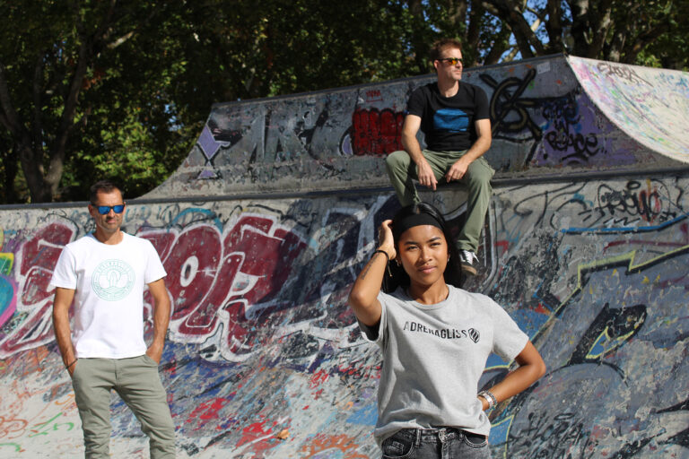 Adrenagliss est portée par des ambassadrices et ambassadeurs dans différents sports de glisse et sports extrêmes comme Eric Deguil quadruple champion du monde de kayak extrême ou encore Célia Martinez membre de l’équipe de France de ski de vitesse.