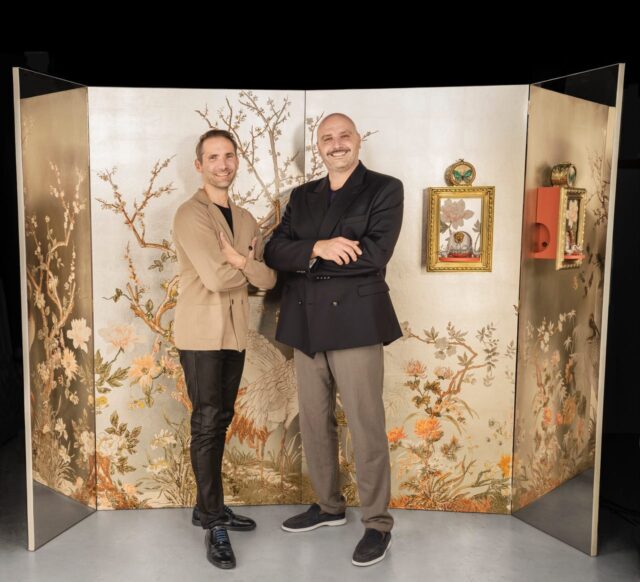 L’inspiration pour cette création unique est issue du décor de la maison de George Sand : un papier peint aux motifs de grues japonaises conçu par la manufacture parisienne Petitjean à la fin des années 1800. Ce papier peint captivant racontait une histoire de délicatesse et de raffinement, une métaphore parfaite de la fusion entre les cultures et les époques. Cette vision est précisément celle que les deux associés souhaitent intégrer dans leur première collection.