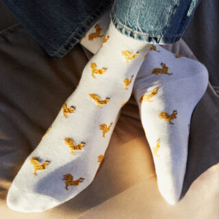 Aymeric et Alexandra Broussaud ont ainsi créé ce qui devait être une collection temporaire. À la demande de passionnés, Maison Broussaud a décidé d’en faire une collection permanente, qui se décline aujourd’hui en chaussette et en boxer.