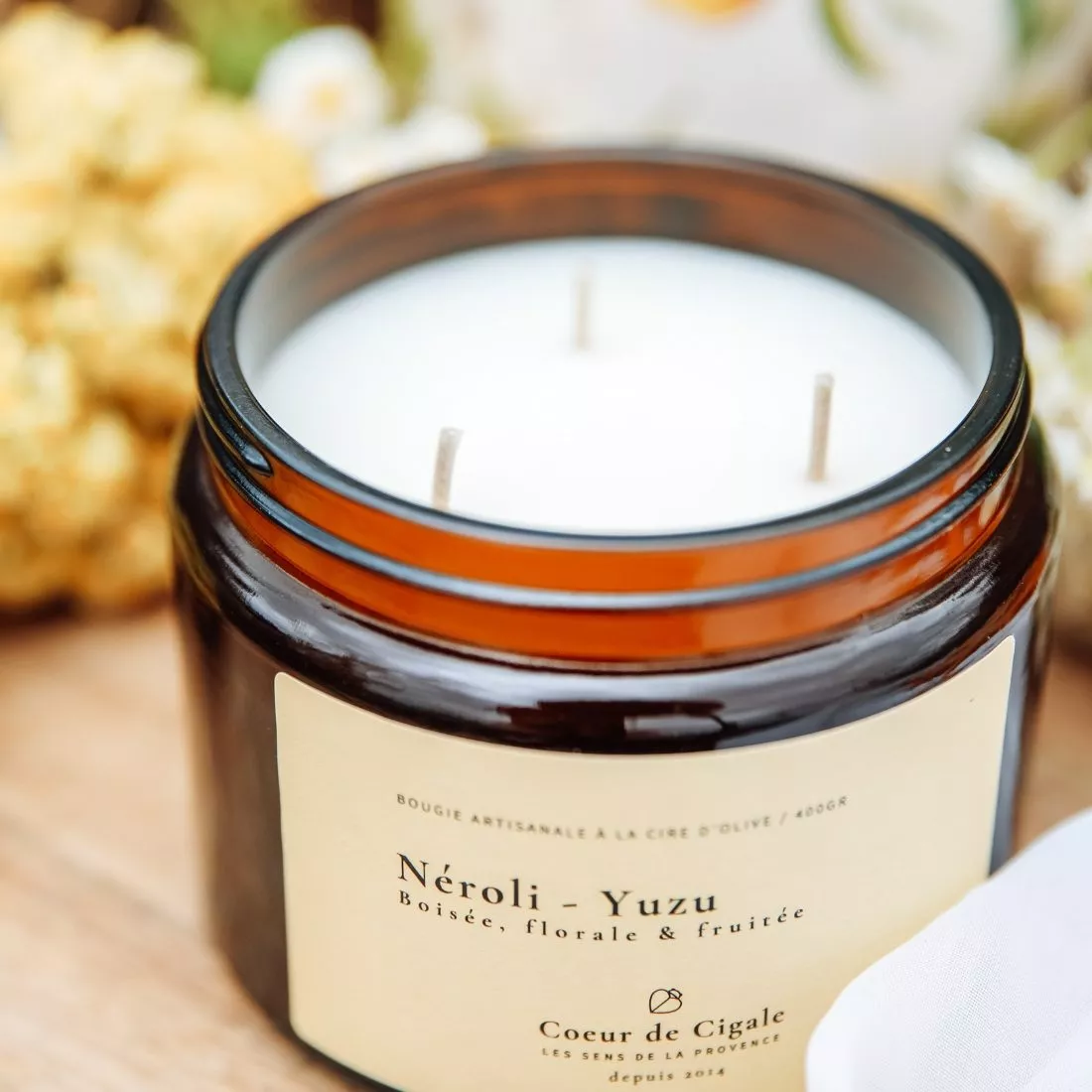 Coeur de Cigale conçoit des bougies parfumées, coulées à la main avec de la cire d’olive.