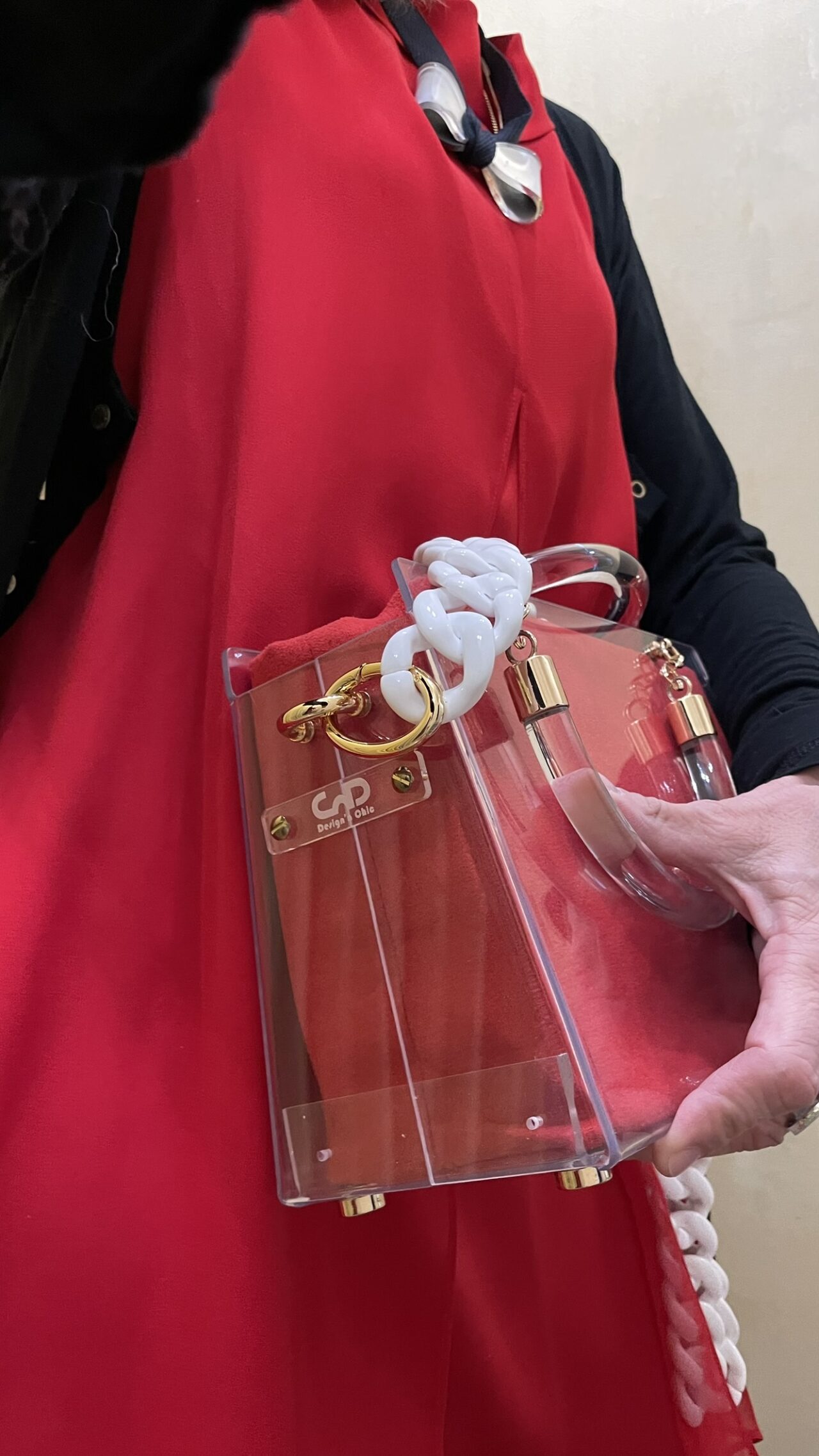 Sa signature ? Celle d’Isabel d’Esquermoise, artiste-styliste du cristal acrylique, qui réinvente les codes du luxe avec son œil décalé et poétique. Si les maîtres en la matière ne sont sans doute pas égalés, ce sont pourtant les talents de Chanel, Dior ou Céline qui ont bercé son enfance et qu’elle toise aujourd’hui avec son joli bag. Une pièce manifeste, à la croisée de la mode et de l’artisanat, qui réinvente les gestes du métier familial historique.