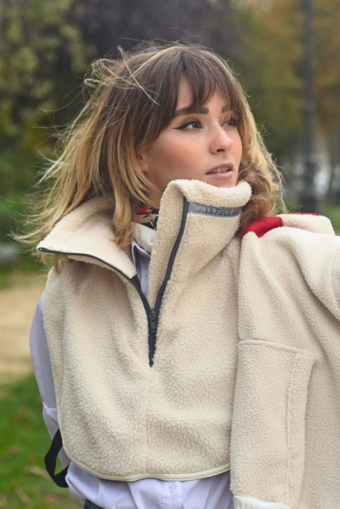 C’est un micro polaire réversible imaginée pour être portée des deux côtés : une face sportive et une face bureau.