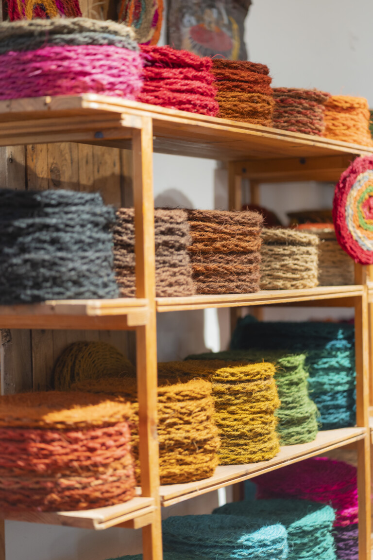 Tissé en fibre naturelle de coco sur notre machine la plus ancienne, datée de 1900, il allie robustesse, authenticité et simplicité.