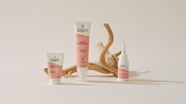 Nous proposons également une gamme complète de soins spécialement conçus pour favoriser la réparation des couches supérieures de la peau. Cette gamme certifiée bio est unique du fait de la présence dans les formules de l’actif exclusif Alga-Sendatu®, breveté par les Laboratoires de Biarritz. Lors de tests in vitro et ex vivo, cet actif a montré son efficacité sur la réparation des couches supérieures de la peau et sur la restauration de sa fonction barrière protectrice. Alga-Sendatu® limite également la réactivité des peaux très sensibles.