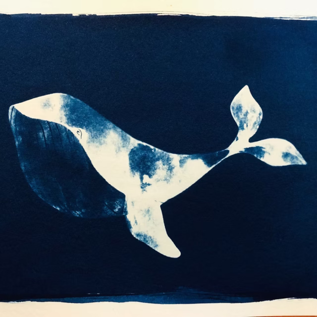 Des cyanotypes artistiques, dans des tons profonds de bleu de Prusse.