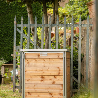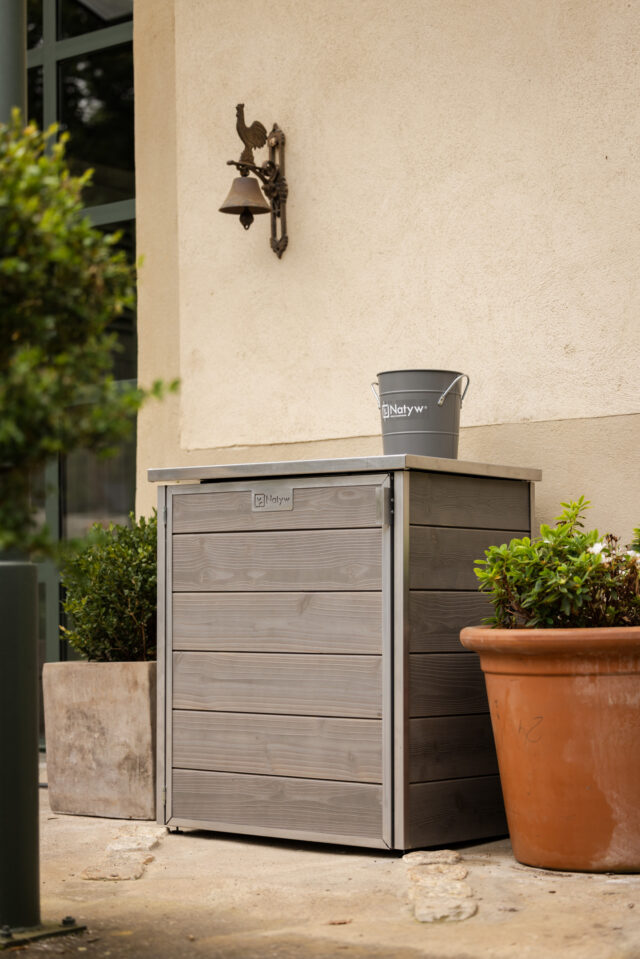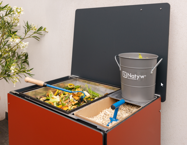 Natyw est un composteur robuste, avec une structure en inox et un habillage personnalisable, en bois ou tout autres matériaux.