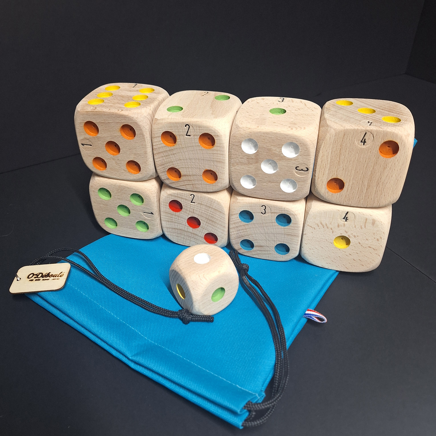 O'Déboulé est un jeu de dés extérieur, une alternative à la pétanque. Il faut additionner les points des dés gagnants en tenant compte d’un bonus lié à la couleur.
