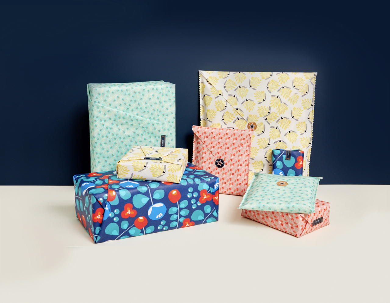 On s’emballe à la française propose une gamme d’emballages réutilisables en coton enduit pour offrir une alternative chic et éco-responsable au papier cadeau jetable.