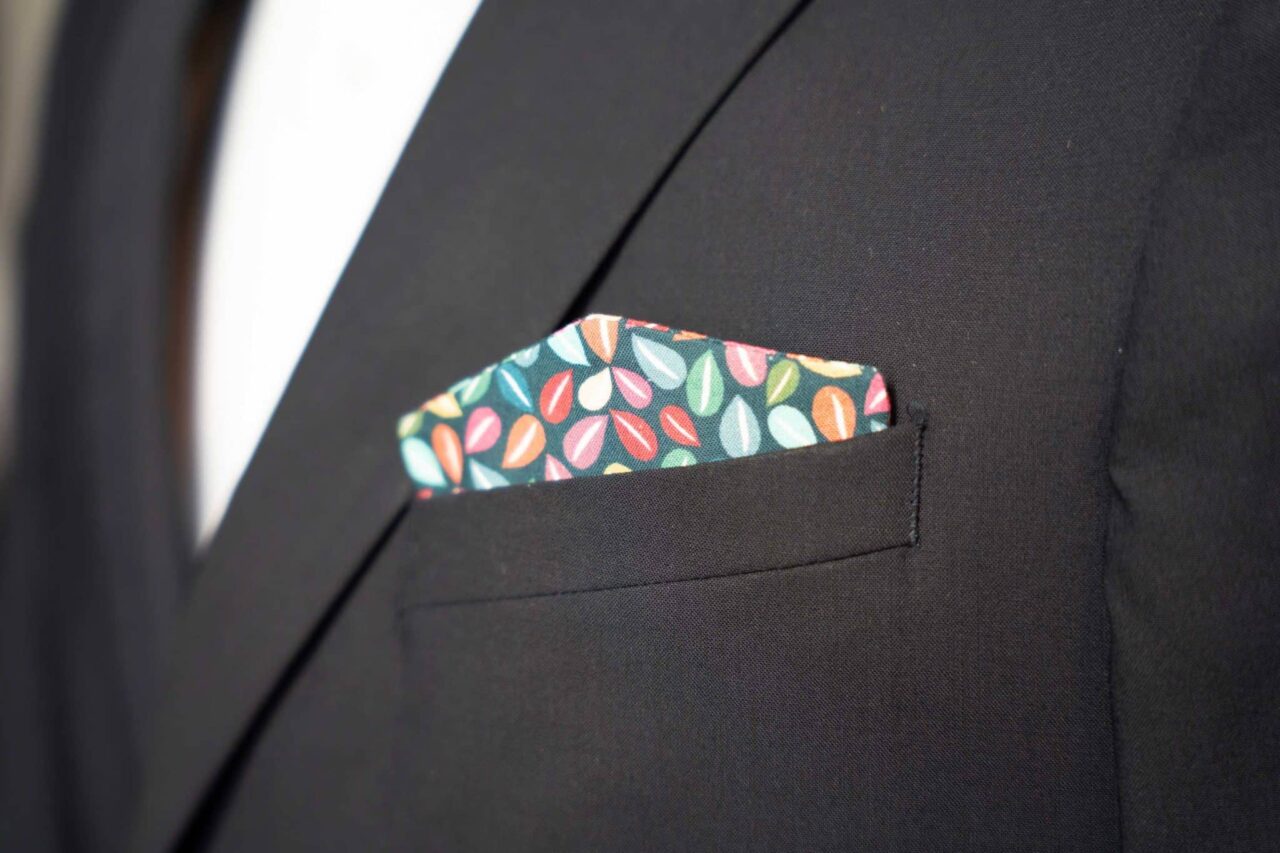 Cette idée ingénieuse, on la doit à Franck. À la veille d’un séminaire d’entreprise, il avait un costume, des chaussures et une ceinture, un bel ensemble mais, auquel il manquait une touche d’audace. Cette audace se traduira par une pochette de costume aux motifs rayés, fleuris ou fantaisistes, qui, en plus d’être élégante, permet d’emporter avec soi, ses cartes, papiers d’identité et billets.