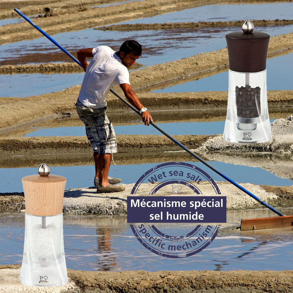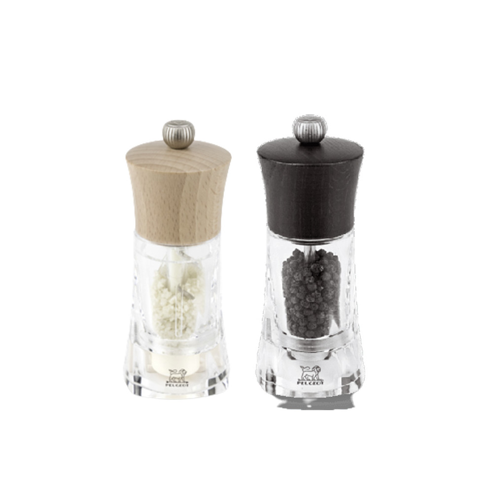 Le set de 2 moulins Oleron Peugeot est fabriqué en France et possède un mécanisme garantie à vie. Le moulin Oléron de Peugeot est en acrylique transparent et en bois naturel laqué chocolat pour le poivre et naturel pour le sel.Les dimensions des moulins sont les suivantes : - hauteur : 14cmCe moulin a la particularité de posséder un mécanisme en céramique spécifiquement prévu pour le sel humide comme le sel de Guérande.
