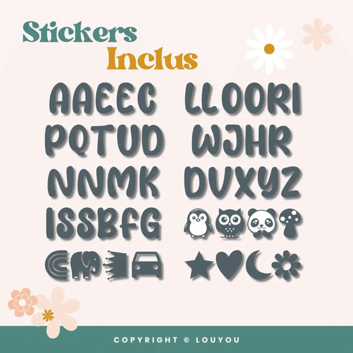 Personnalisez vos cubes en bois de hêtre de 5cm avec nos lettres stickers pour créer des prénoms, mots et décorations uniques et élégantes pour chambres de bébé, enfants, baby showers et mariages. Les Alphacubes LouYou offrent une décoration personnalisée parfaite pour les baptêmes, mariages, cadeaux de naissance, chambres d'enfants et tout événement spécial avec des lettres en bois.