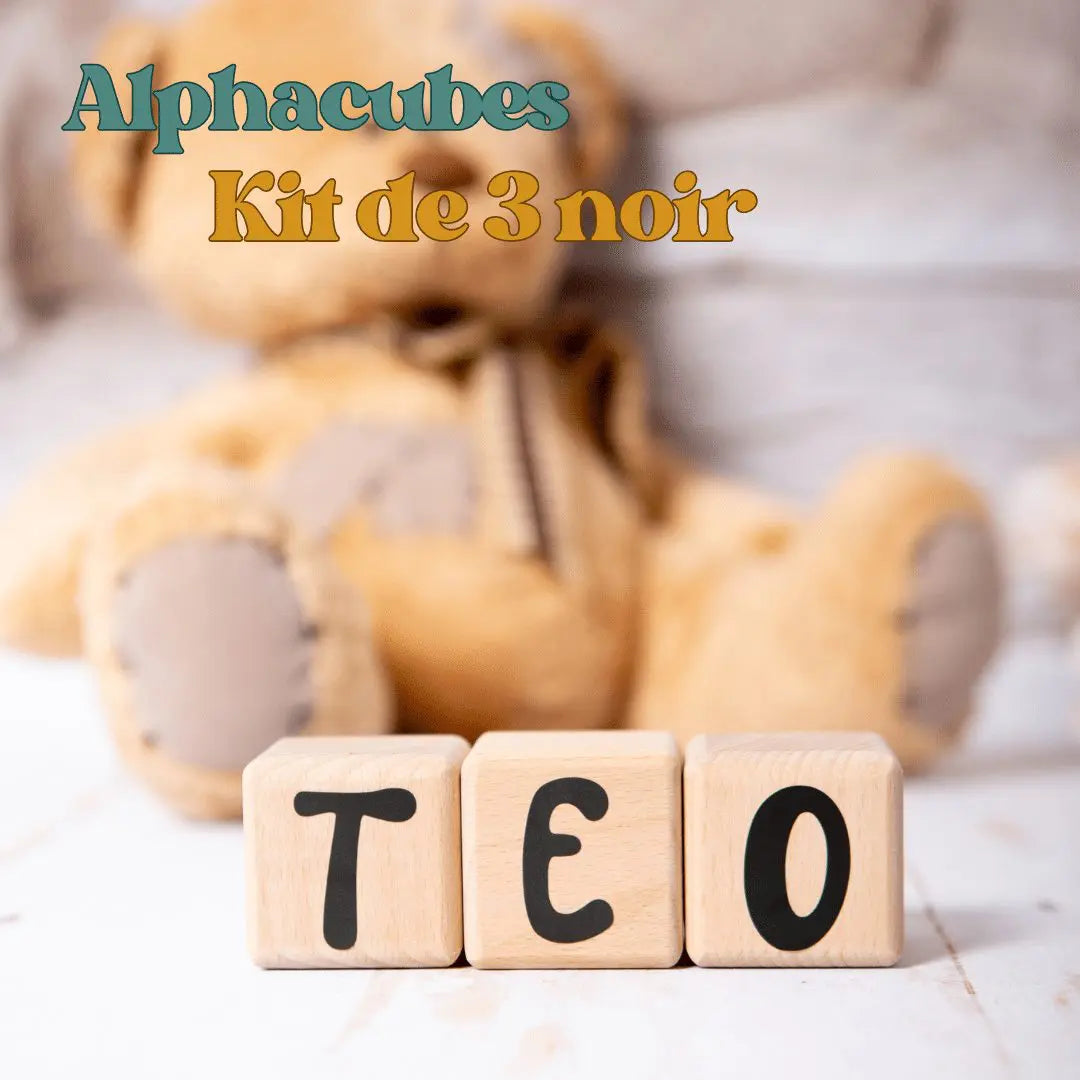 3 Cubes en Bois de 5cm x 5cm + 47 Stickers noirs