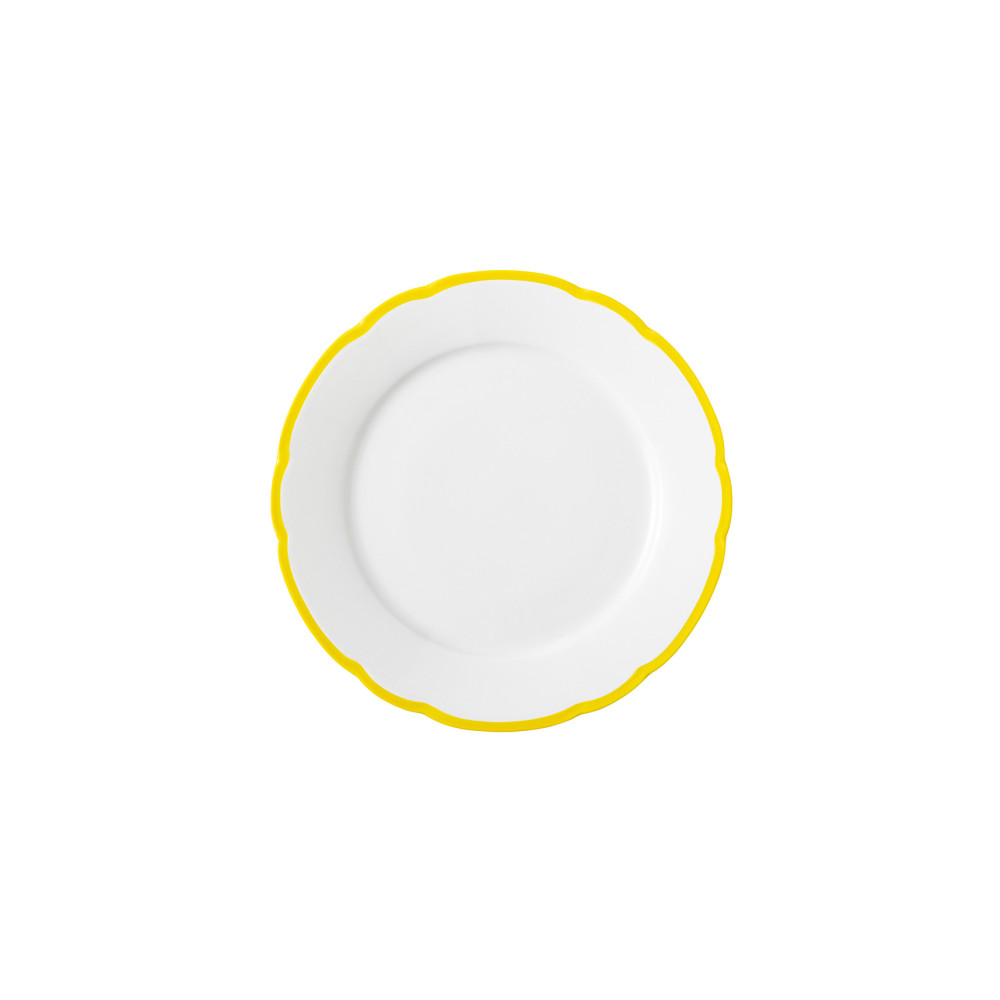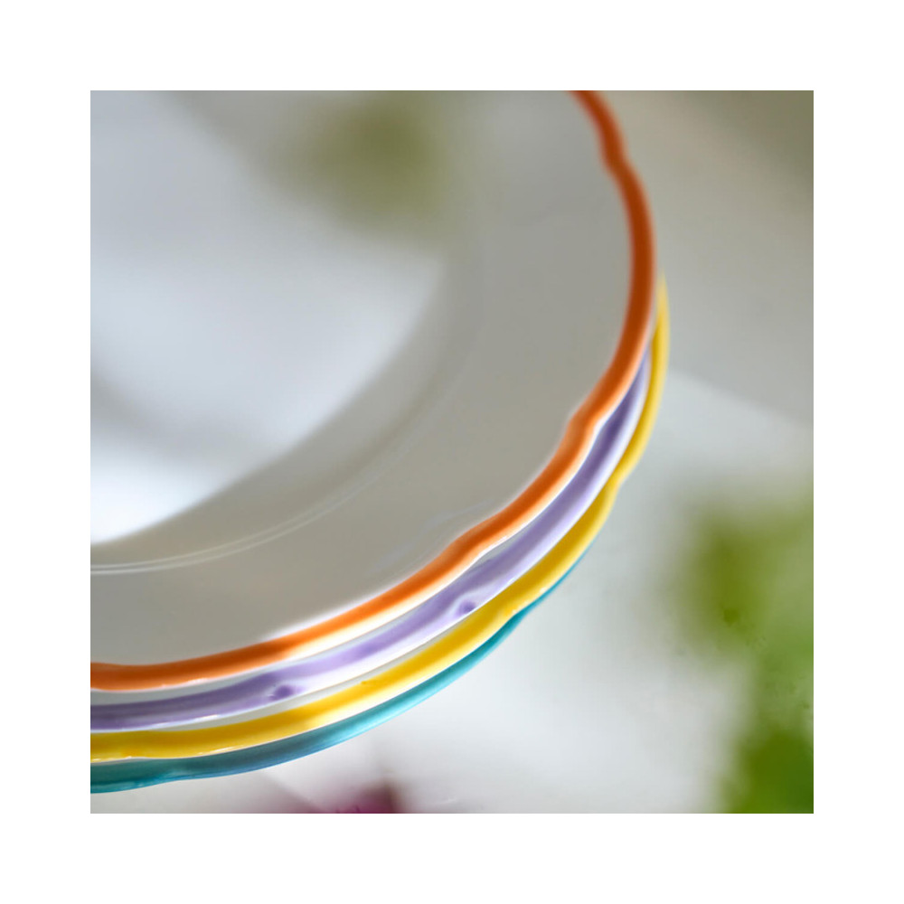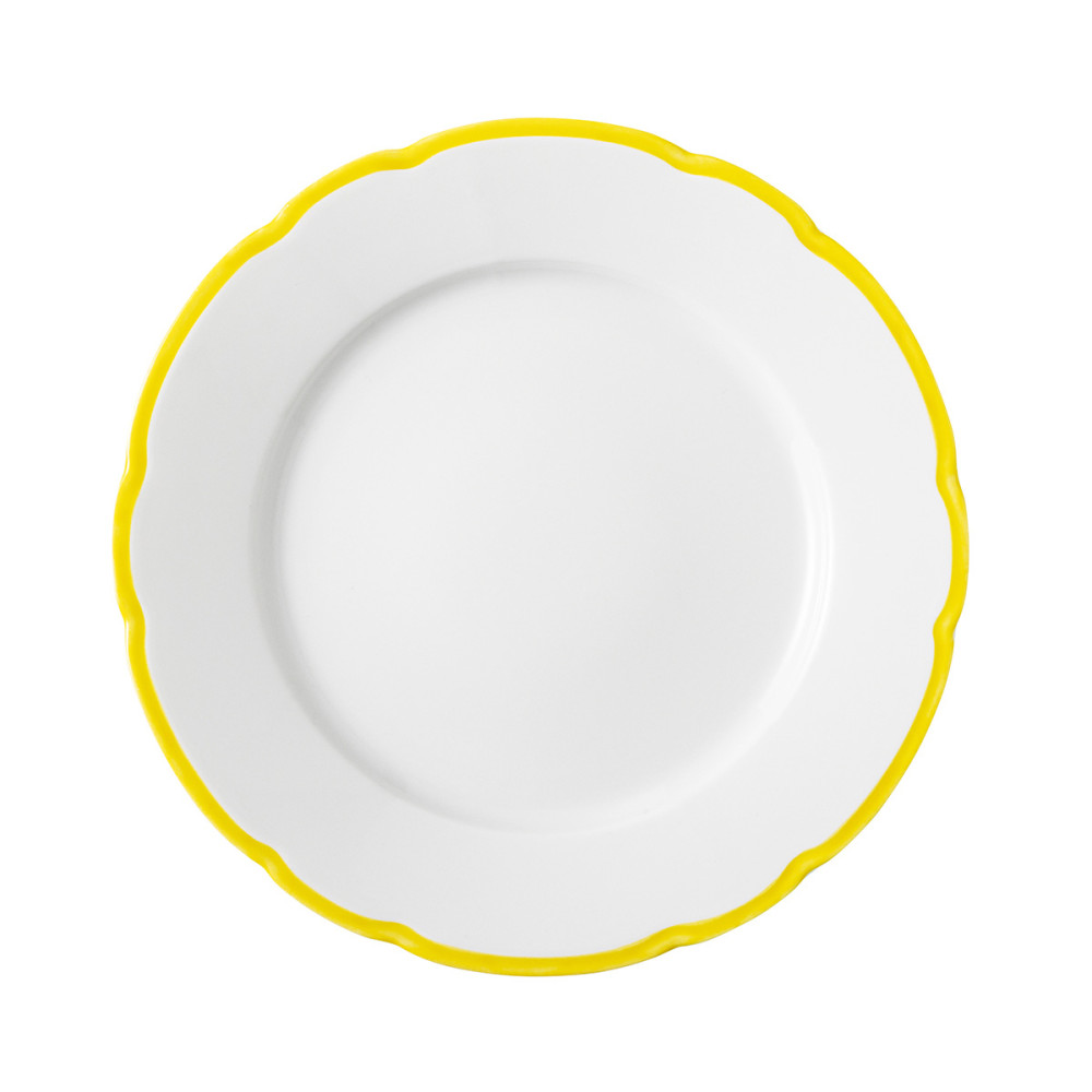 Fabriquées en France, par Degrenne, les assiettes REMINISCENCE à galon coloré, en porcelaine apporteront une touche vintage et ludique à votre table. Fabriquées en porcelaine extra blanche de Limoges, ces assiettes ont une forme festonnée ornées d'un galon coloré, posé à la main. Cette collection regroupe tradition et modernité pour s'inviter facilement à tous vos moments de partage.