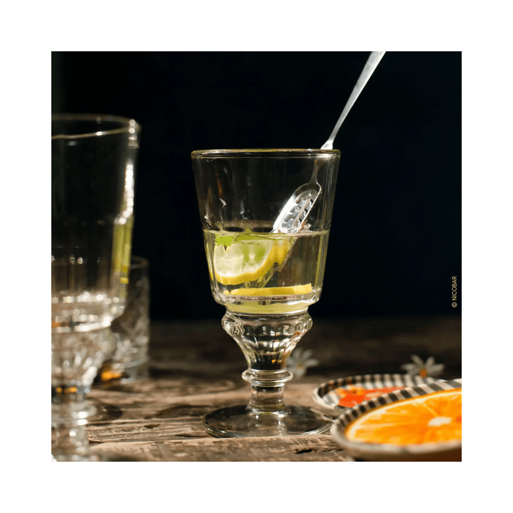 Les incontournables verres à absinthe de la collection spiritueux sont fabriqués en France par La Rochère. Sa jambe travaillée et sa paraison légèrement striée lui confère un caractère contemporain. Ces verres sont réédités en collaboration avec le musée de l'Absinthe à Auvers sur Oise.