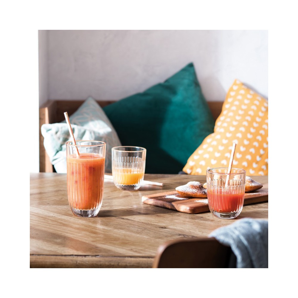 Ensemble de 6 verres long drinks de la gamme OUESSANT fabriqués en France par LA ROCHERE. A l'image de la petite île de Ouessant à la pointe du Finistère, cette collection est intemporelle et contemporaine. En verre pressé épais et résistant, il est très facile d'entretien.