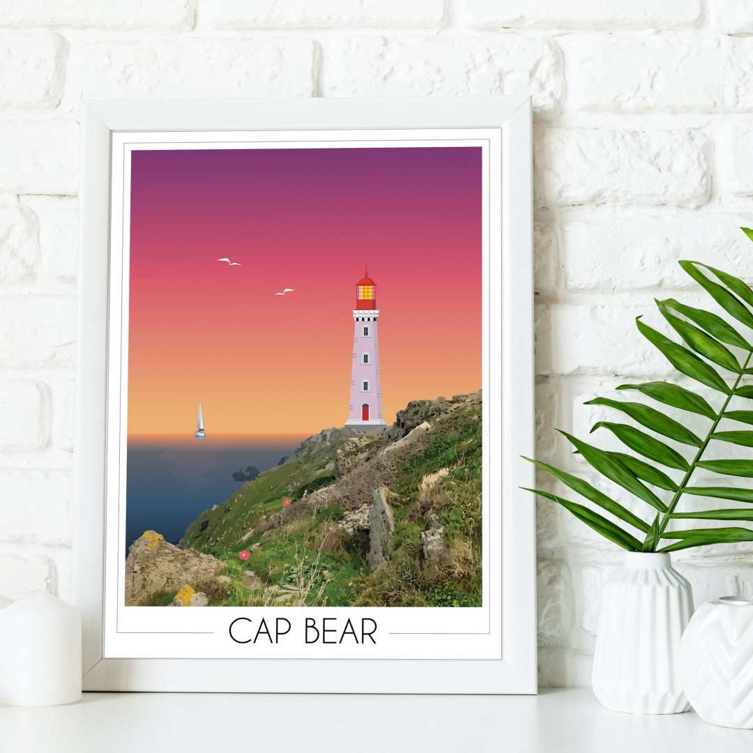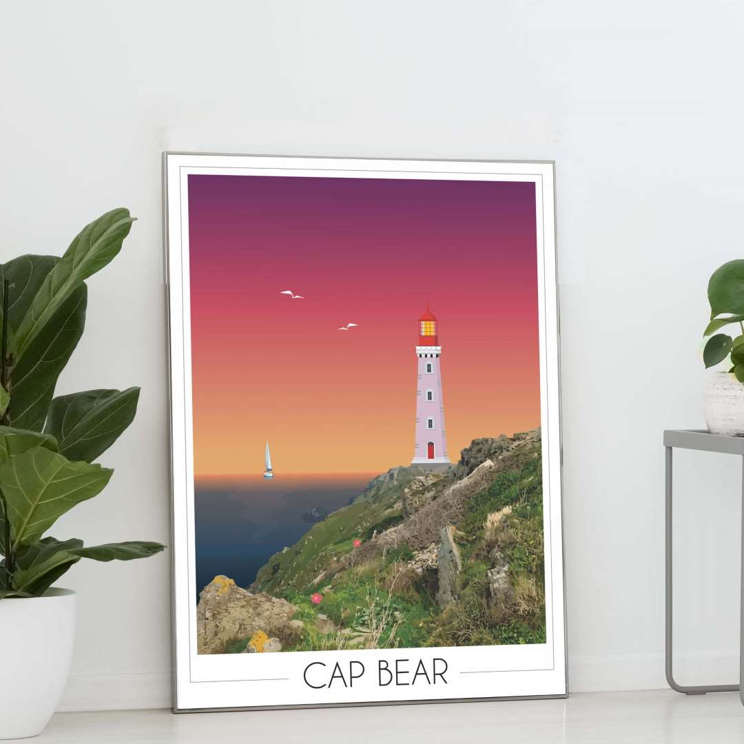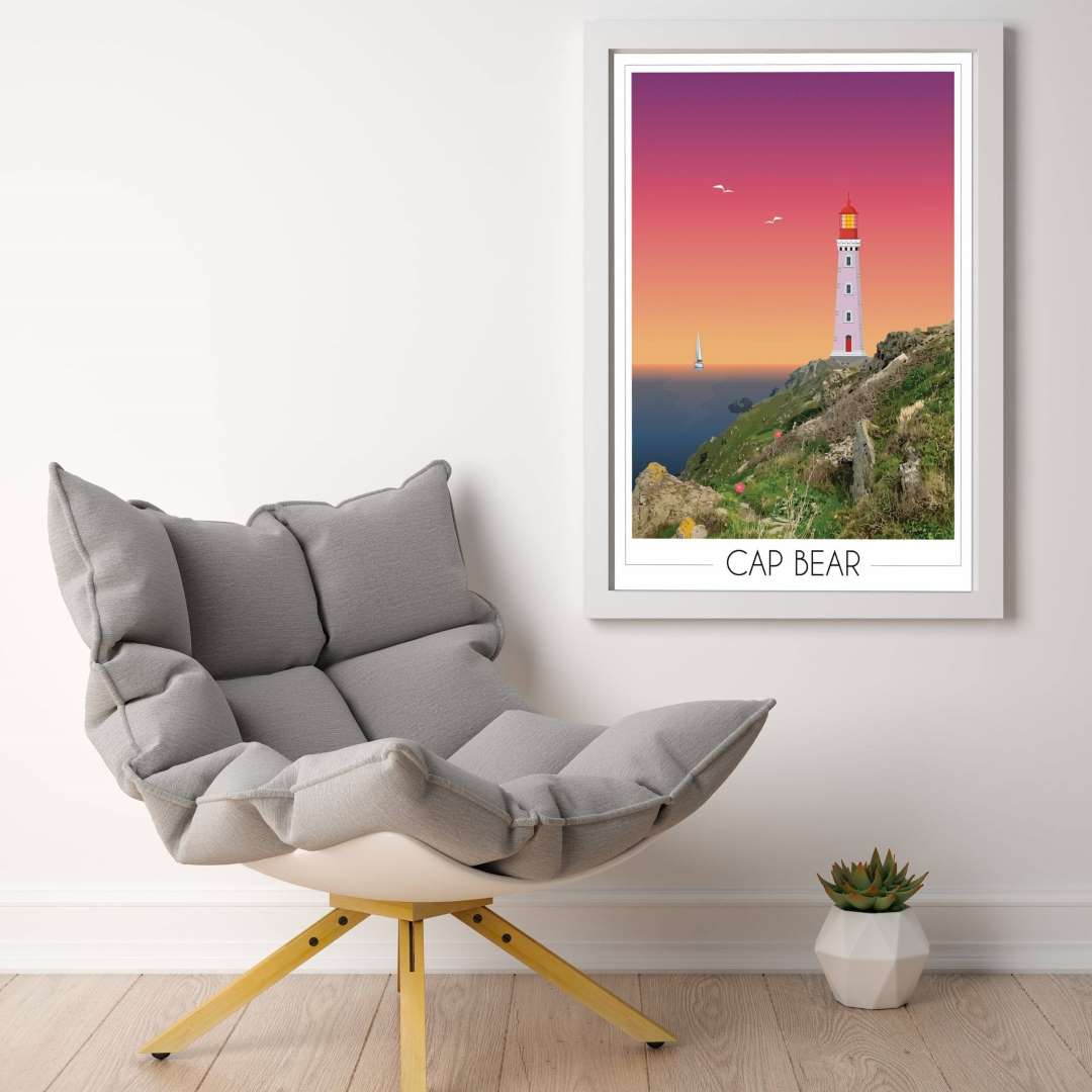 Ainsi, cette affiche déco “phare Cap Béar Port-Vendres” apporte un repère marin clair dans une pièce.