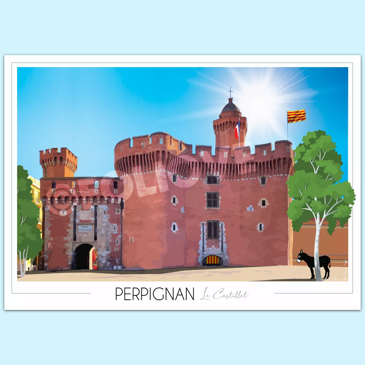 Découvrez l'âme de la Catalogne avec cette illustration unique du Castillet à Perpignan par Marie Troff. Imprimée de manière éco-responsable, cette affiche murale allie histoire et folklore grâce à la présence symbolique de l'âne catalan.