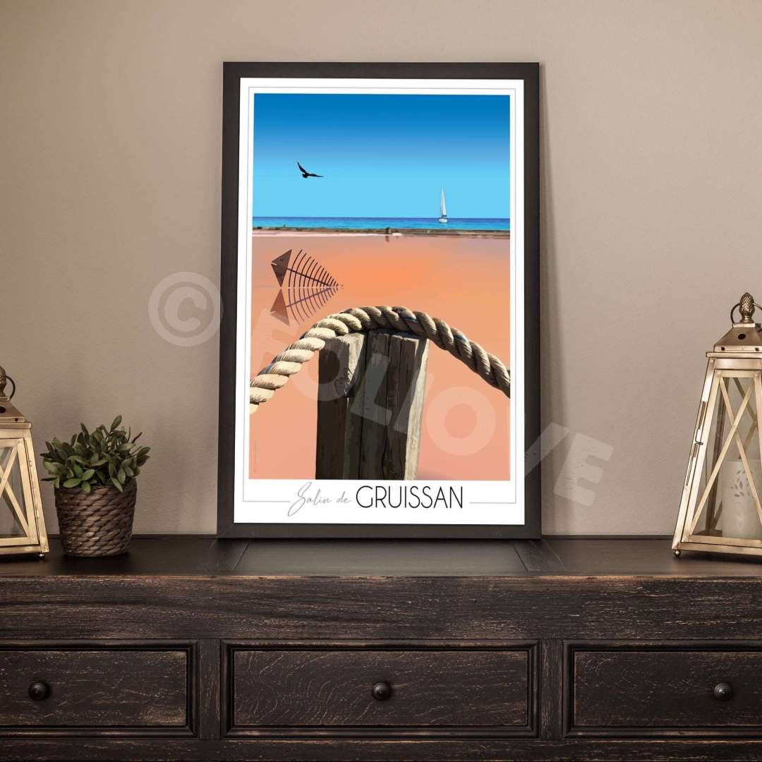 Ainsi, cette affiche salins de Gruissan Occitanie évoque le calme du littoral et les couleurs pastel du Sud.