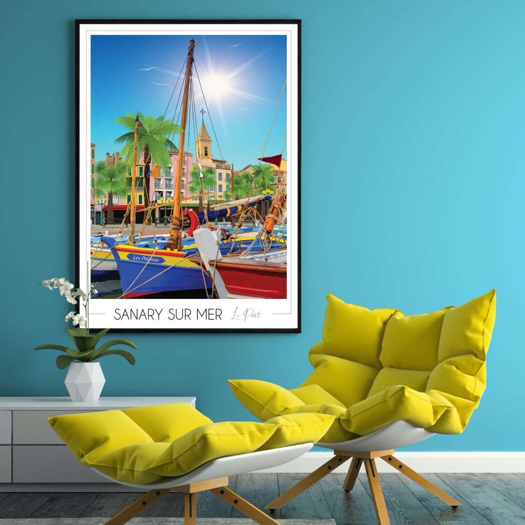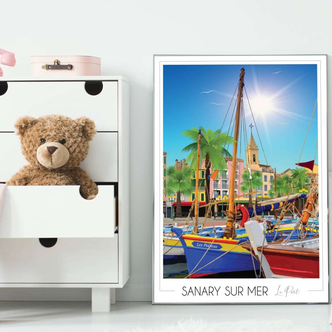 Affiche Sanary sur Mer, cette création originale de Marie Troff met en scène les célèbres Pointus de Sanary sur Mer dans une ambiance douce et lumineuse. Dessinée en France, elle évoque à la fois le port, la Méditerranée et l’esprit d’un travel poster Sanary sur Mer au charme délicatement rétro. C’est une affiche vintage de Sanary sur Mer facile à intégrer dans une décoration murale, ou à offrir à une personne attachée à la côte varoise. On la retrouve disponible en plusieurs formats, pour celles et ceux qui cherchent une affiche touristique originale de Sanary-sur-Mer.