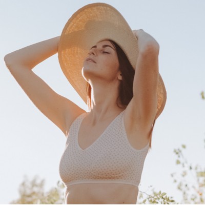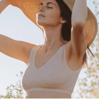 Cette brassière Albertine Blossom apporte sa petite touche de fraîcheur et de romantisme ! feuillage vert grisé,mini boutons de fleurs orangés et sépia sur un fond rose nude :un charme suranné et romantique qu'on aime tant chez Matins d'avril !Pratique et ultra-confortable, Albertine Blossom offre un maintien très efficace puisque nous vous proposons dans ce thème une maille de coton biologique avec 8% d'élasthanne, associée à un élastique ferme et exigeant.Son décolleté V devant et dos entièrement élastiqué qui dessine et enveloppe parfaitement la silhouette, son empiècement à l'entregorge qui épouse l'arrondi des seins, son élastique large à la basque qui offre un réel maintien adapté aux fortes poitrines.