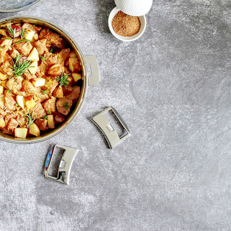 Cette anse amovible CASTELLINE est fabriquée en France par Cristel. Avec son design en fonte d'acier inoxydable, cette anse offre à la fois simplicité, efficacité et sécurité.La anse amovible CASTELLINE est conçue pour se verrouiller automatiquement grâce à son mécanisme en acier inoxydable.