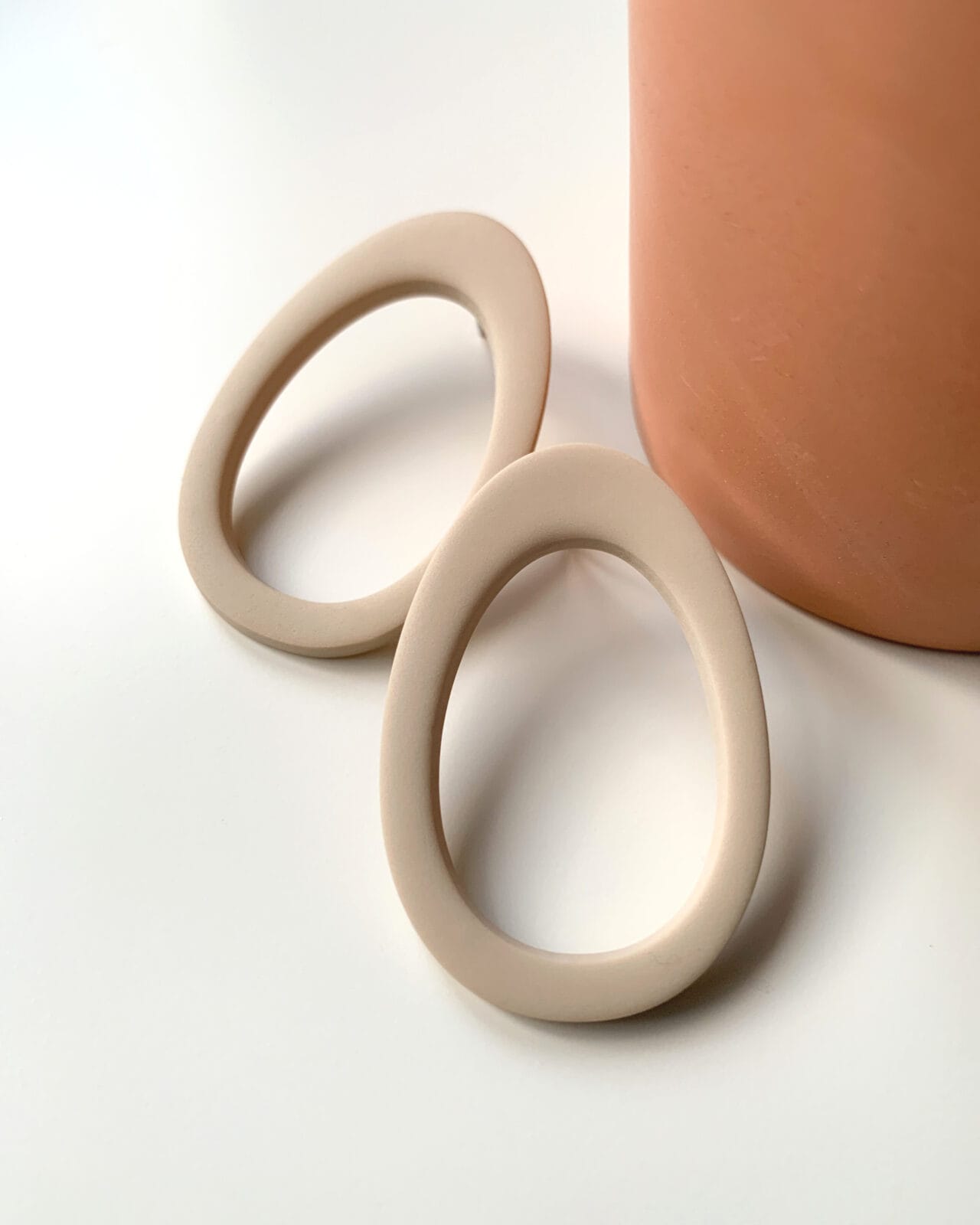 Boucles d’oreilles modernes et minimalistes aux courbes organiques, fines et extrêmement légères. Sa fabrication a nécessité plusieurs étapes, du croquis préparatoire à la réalisation du coloris unique, puis au ponçage minutieux de chacune des pièces.Chaque modèle est réalisé à la main et comporte de légères variations qui font de chaque pièce un exemplaire unique et original.Finition mate. Résistes à l’eau.