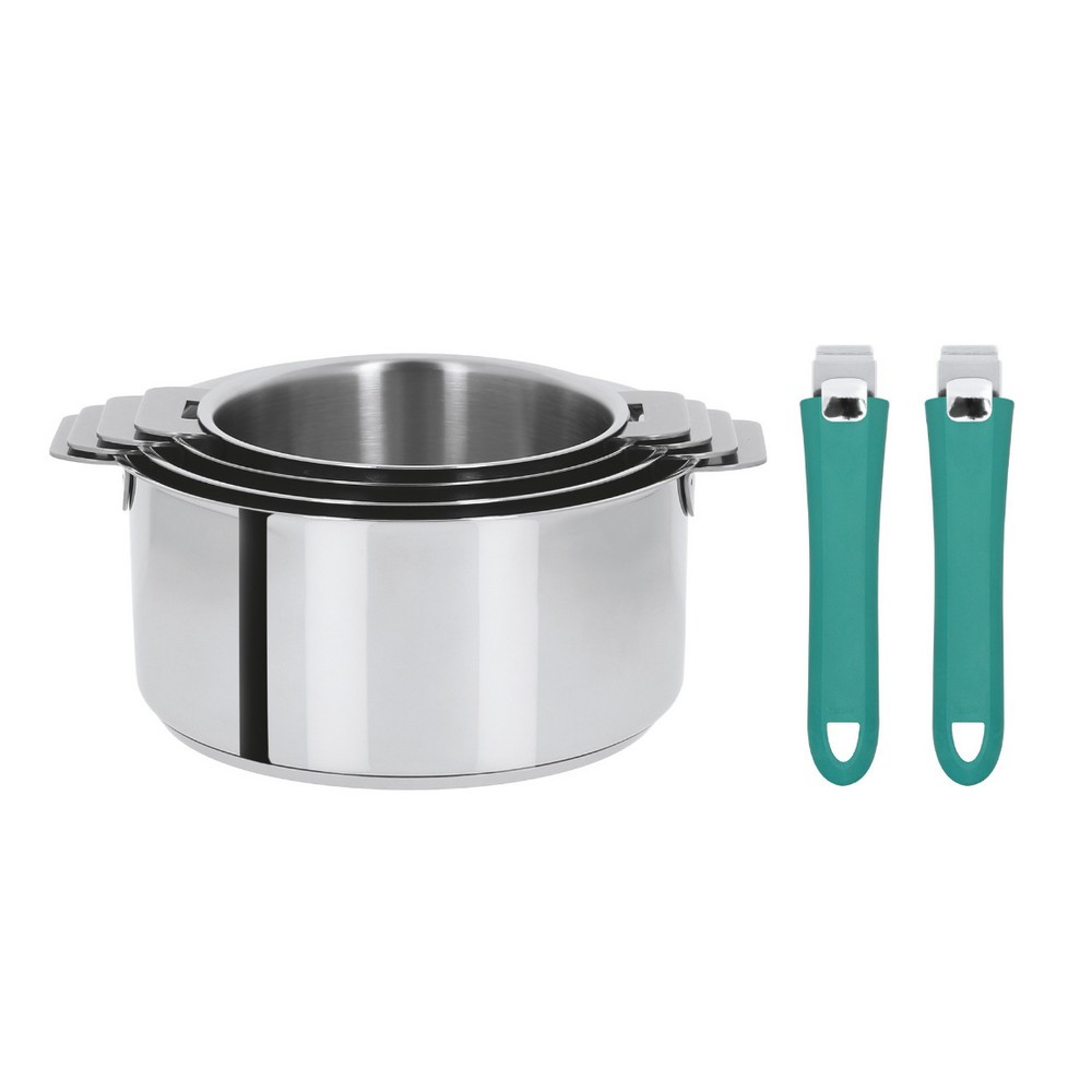 Batterie 4 casseroles + 2 poignées amovibles Cristel Mutine Evolution - 6 coloris
