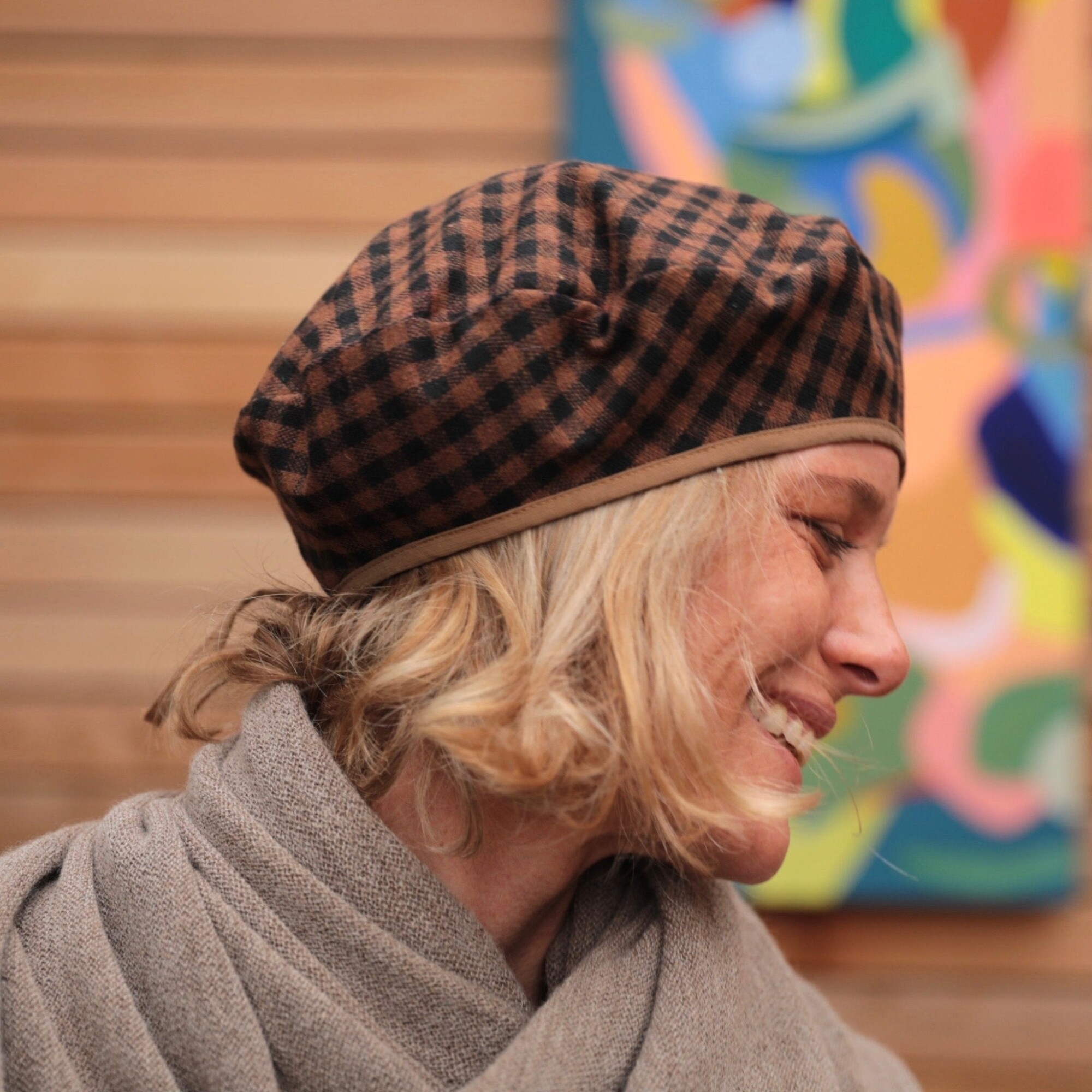 Beret Côme - vichy écureuil/noir