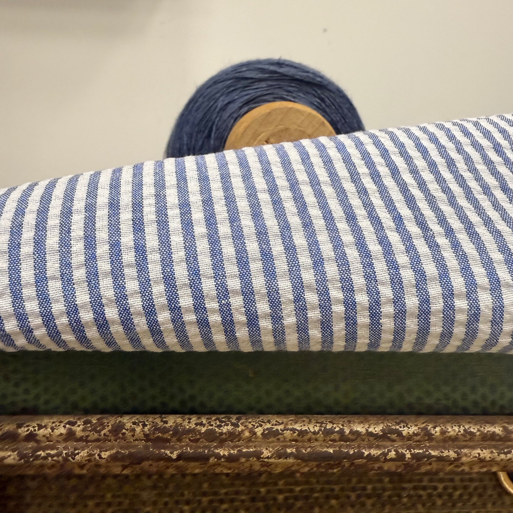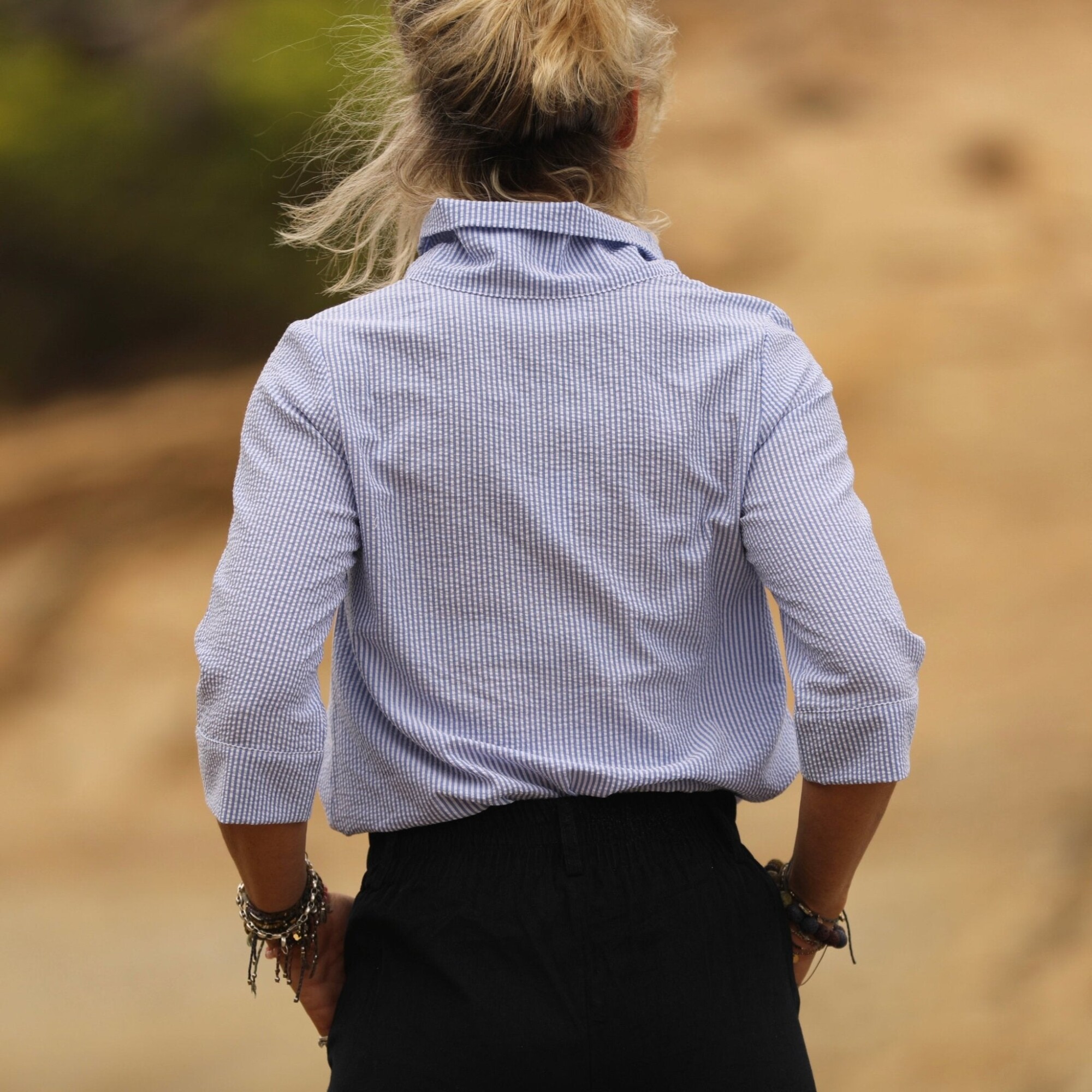Blouse Catherine en seersucker de coton bleu/blanc