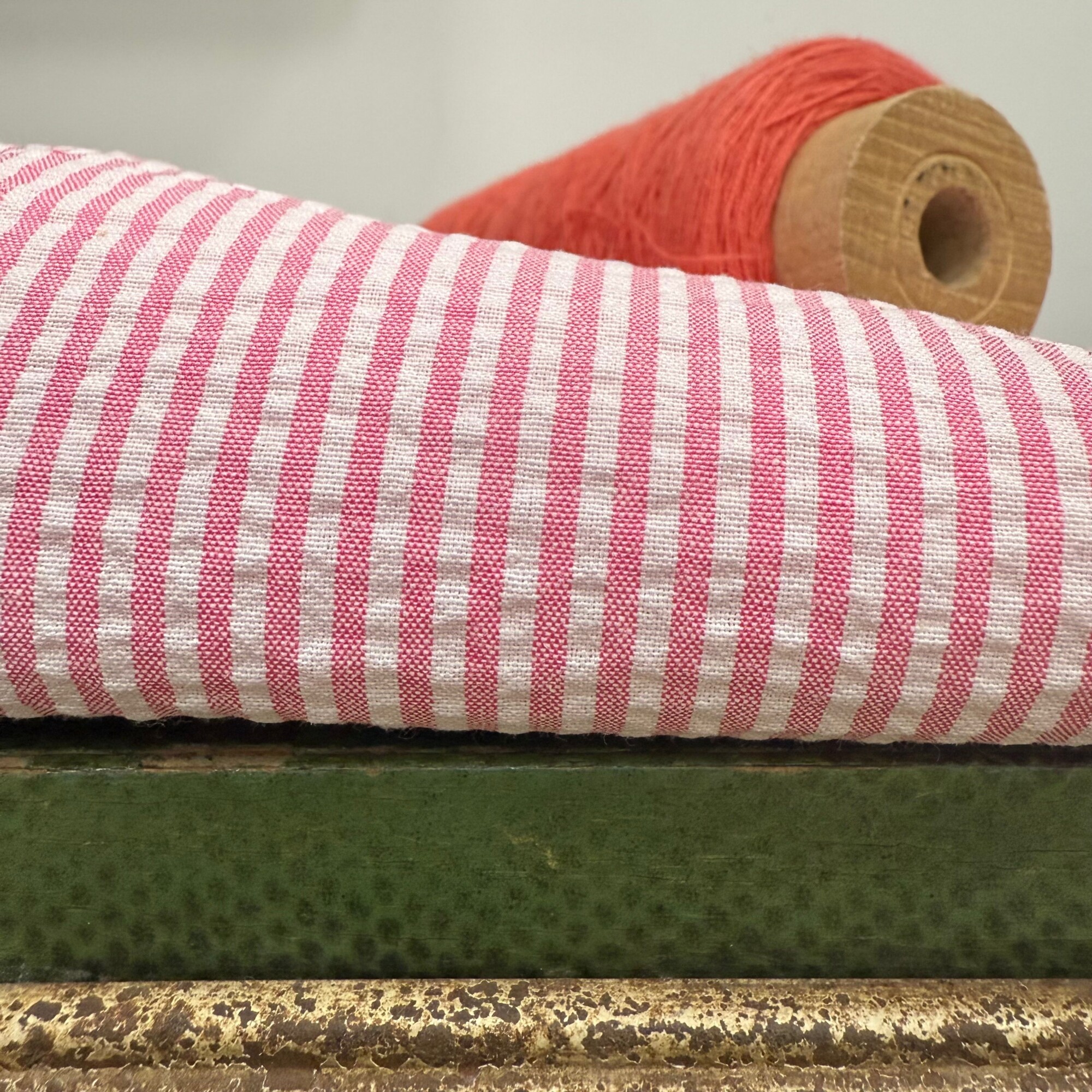 Blouse Catherine en seersucker de coton rose/blanc