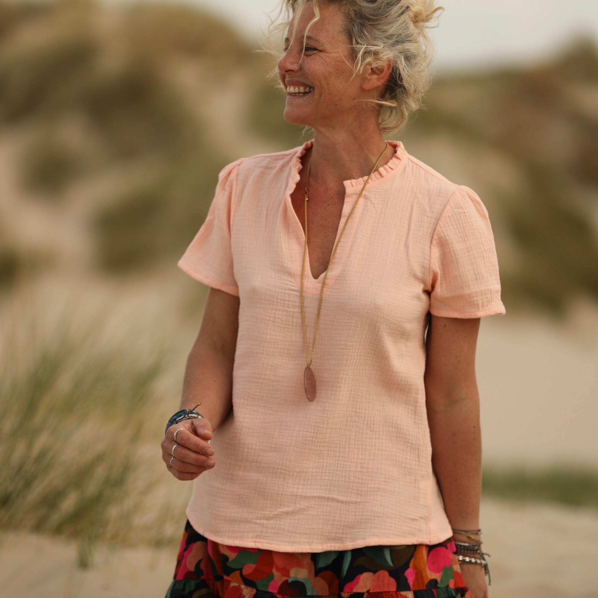 Blouse Ernestine en double gaze de coton abricot