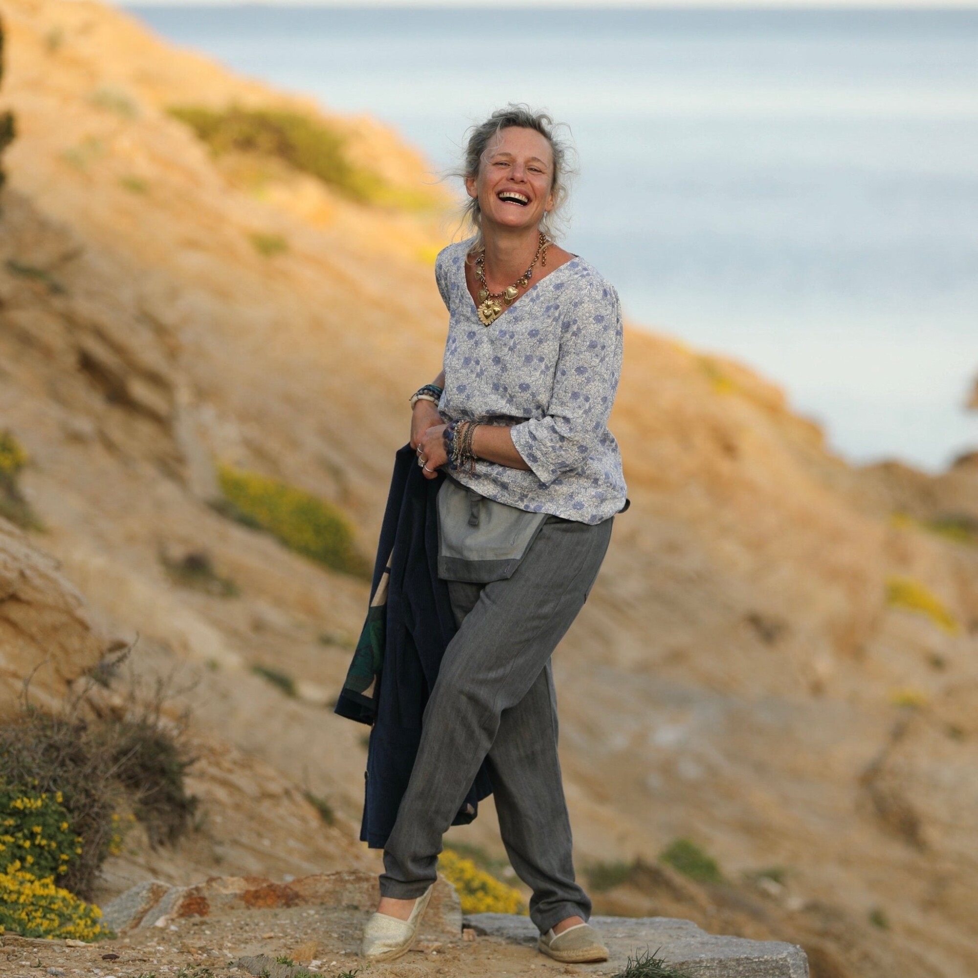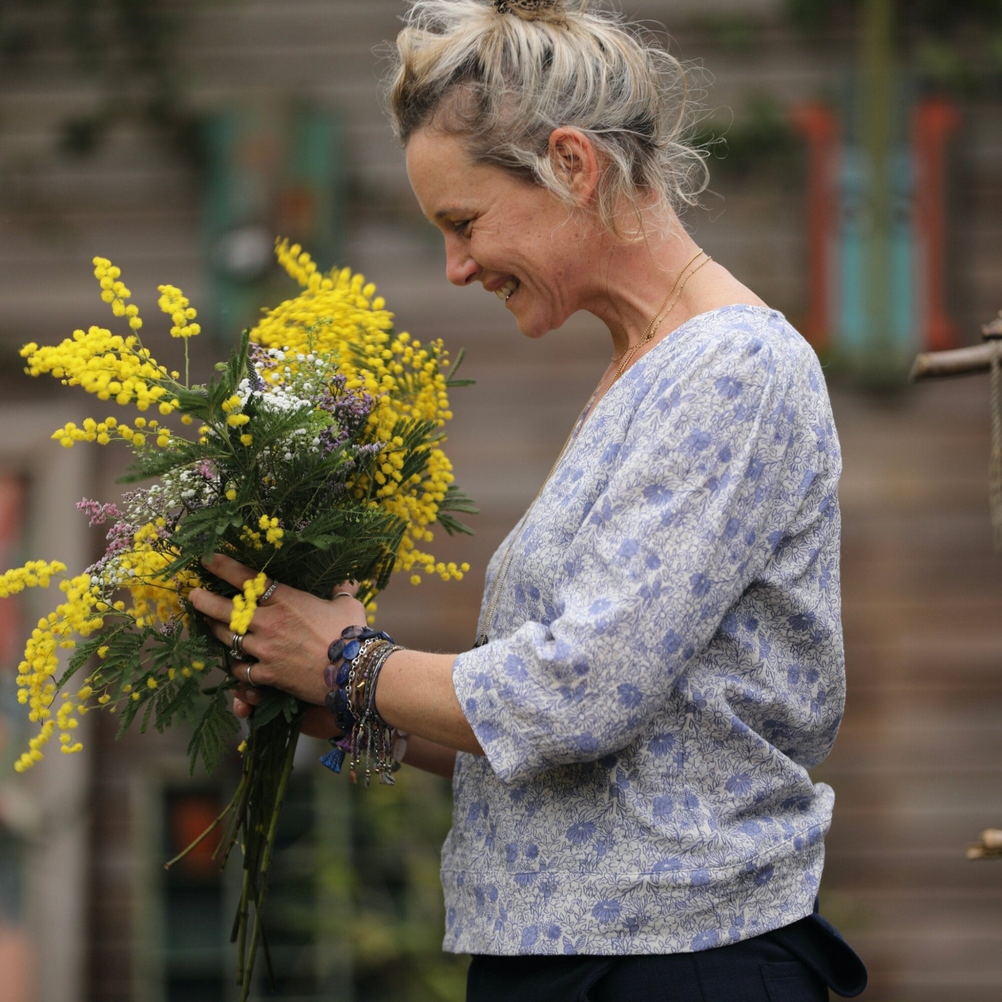 Blouse Eulalie col V - manches 3/4 - double gaze de coton chardon