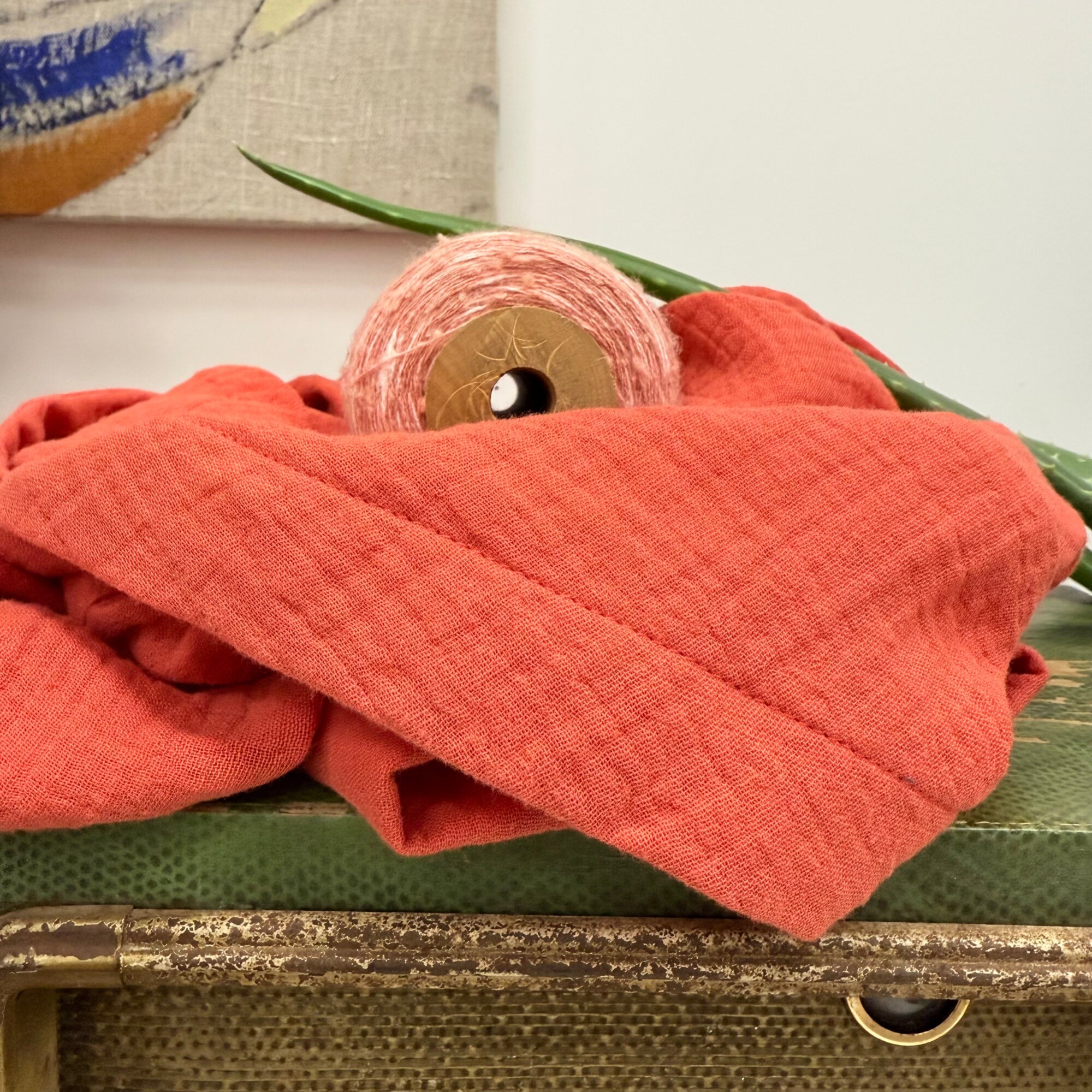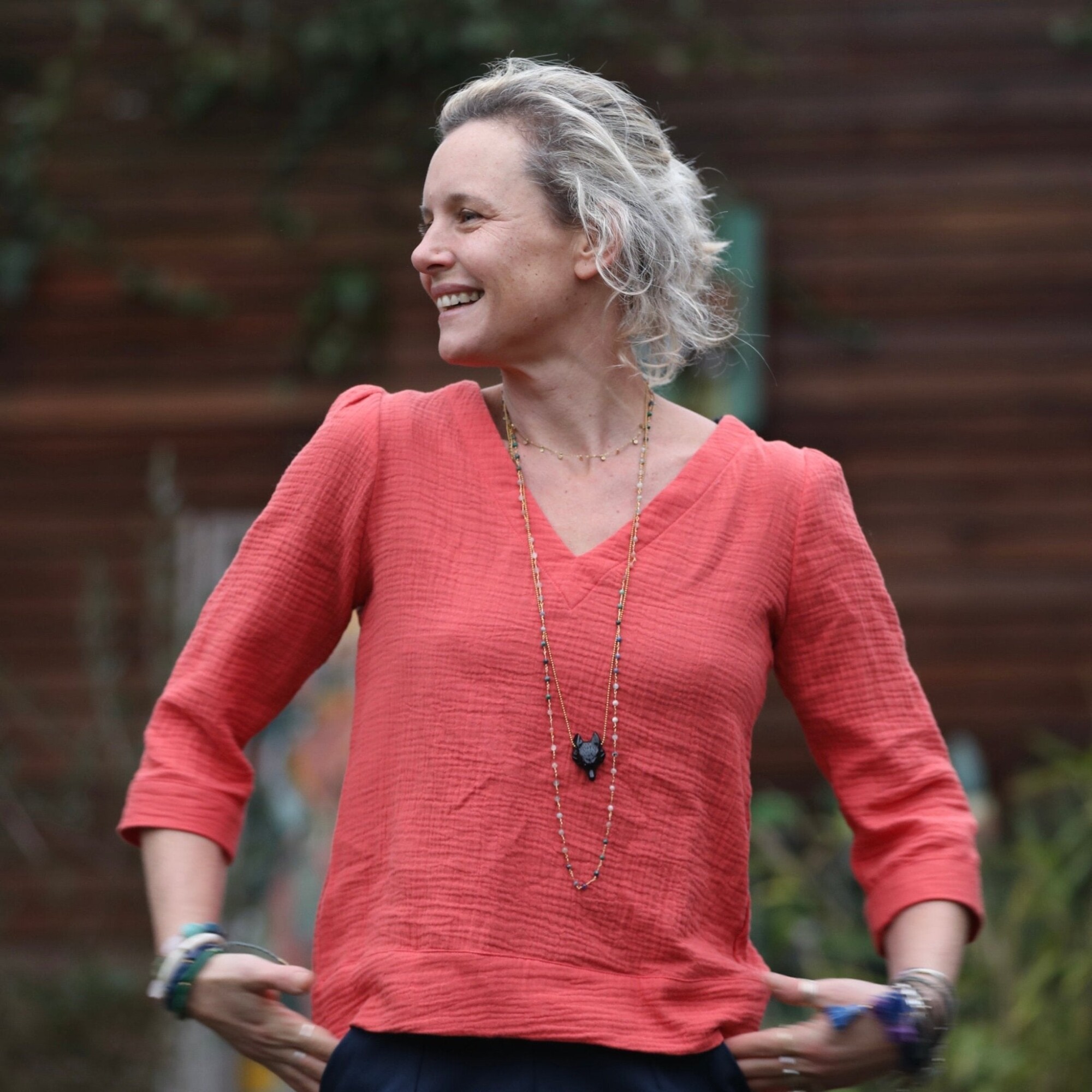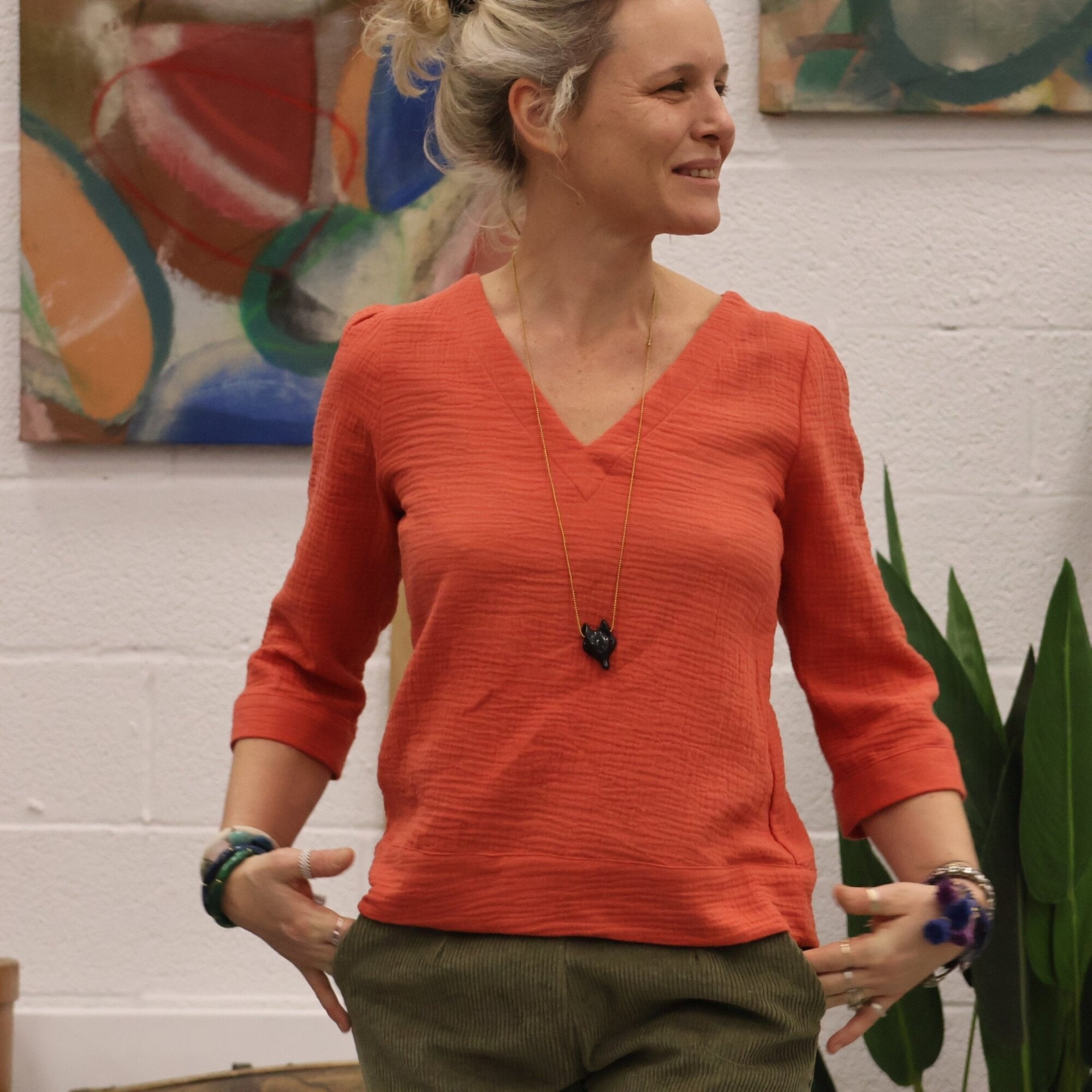 Blouse Eulalie col V - manches 3/4 - double gaze de coton Papaye