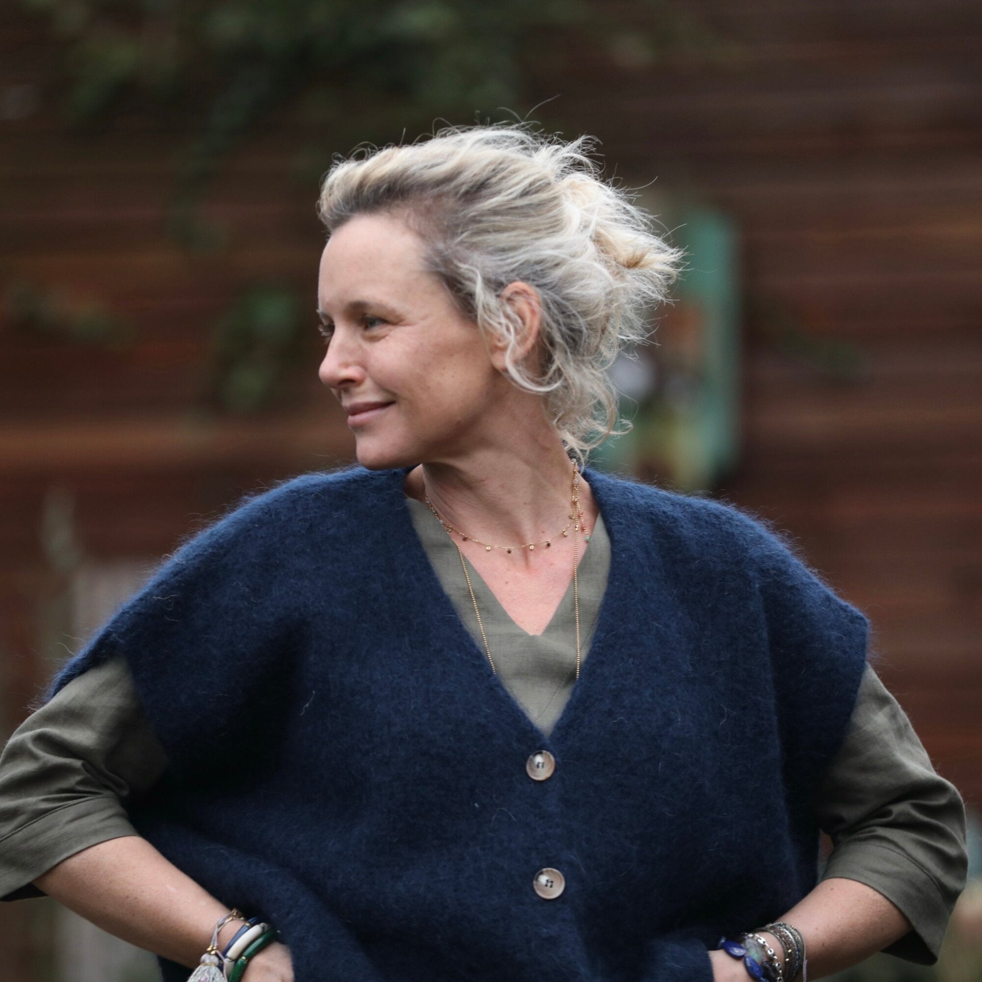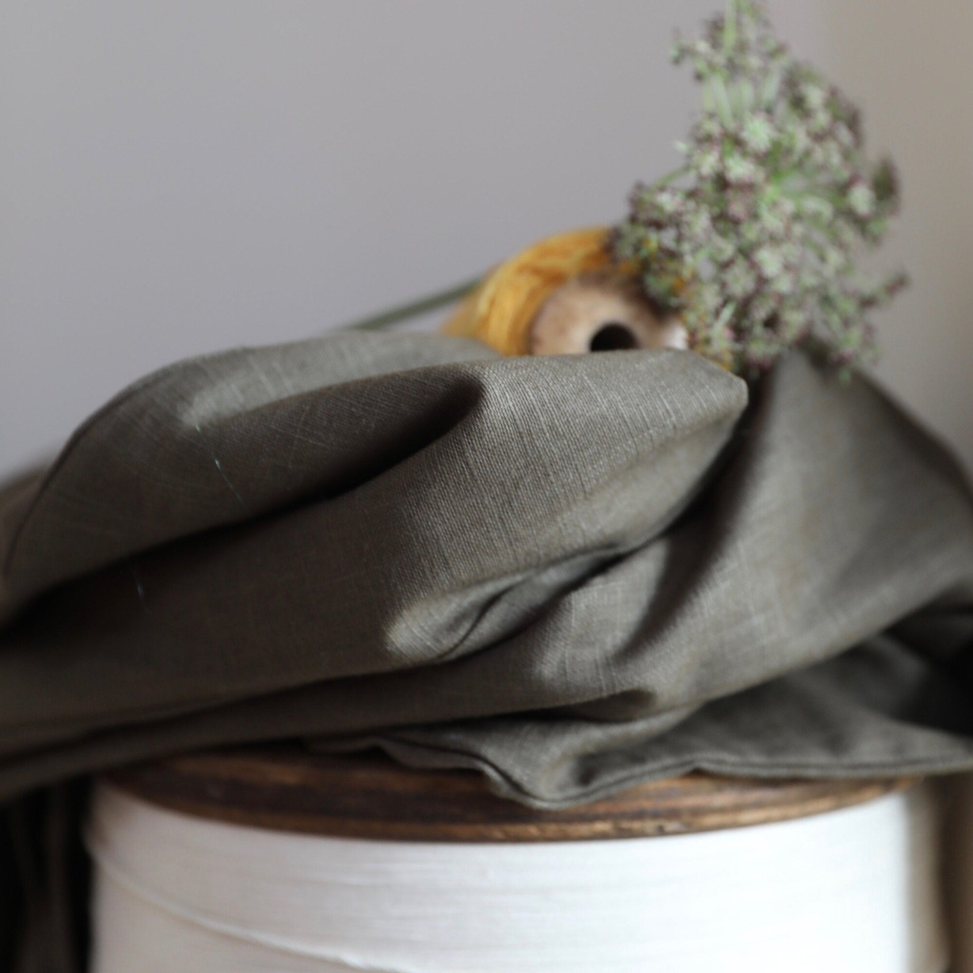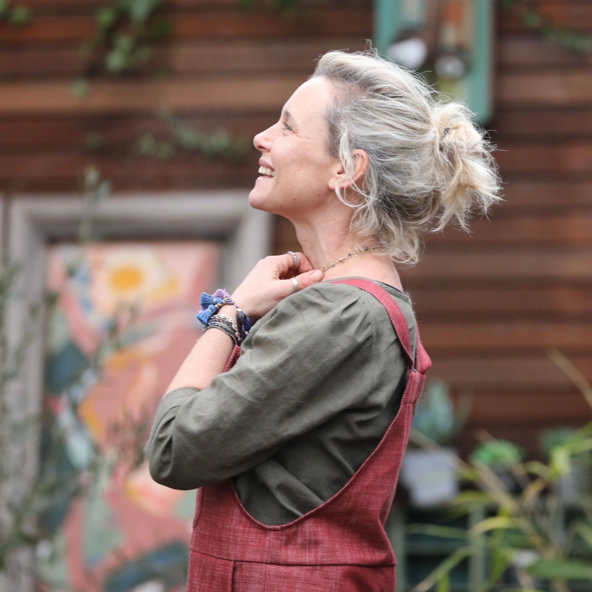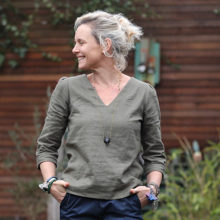 Blouse Eulalie col V - manches 3/4 - lin kaki
