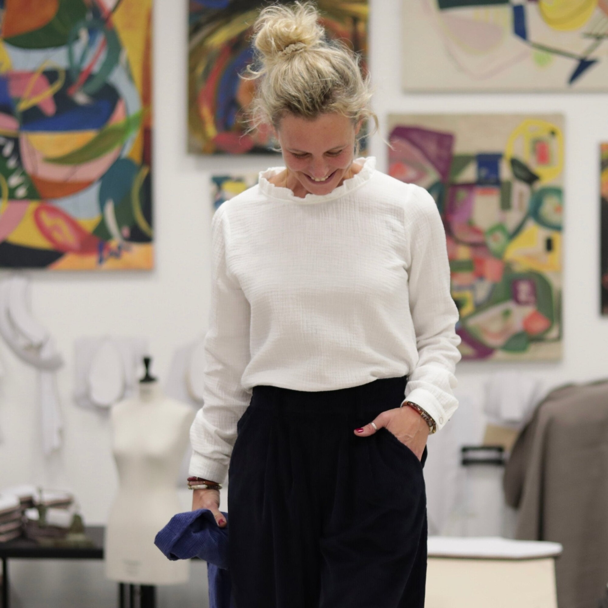 Coupe La blouse Fantine présente une coupe fluide et féminine qui accompagne naturellement les mouvements. Son col froufrou délicat ajoute une touche poétique, tandis que sa ligne légèrement ample garantit confort et élégance au quotidien.