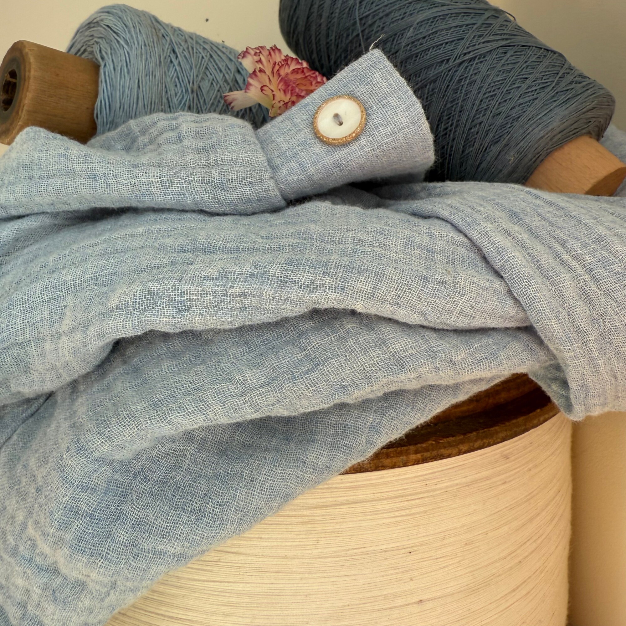 Blouse Isabeau - double gaze de coton chinée bleu doux