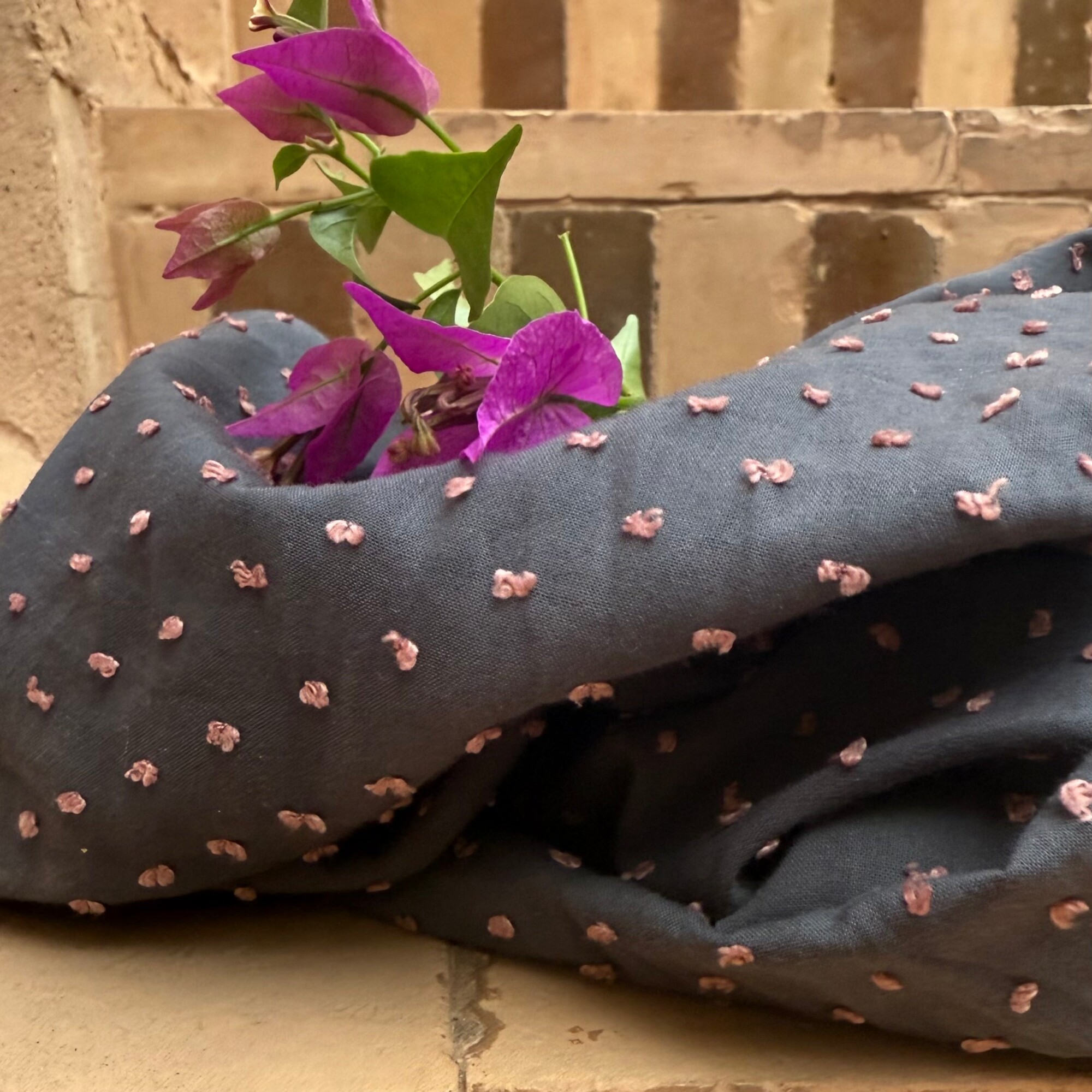 Blouse Janelle – Voile de coton gris plumetis rose