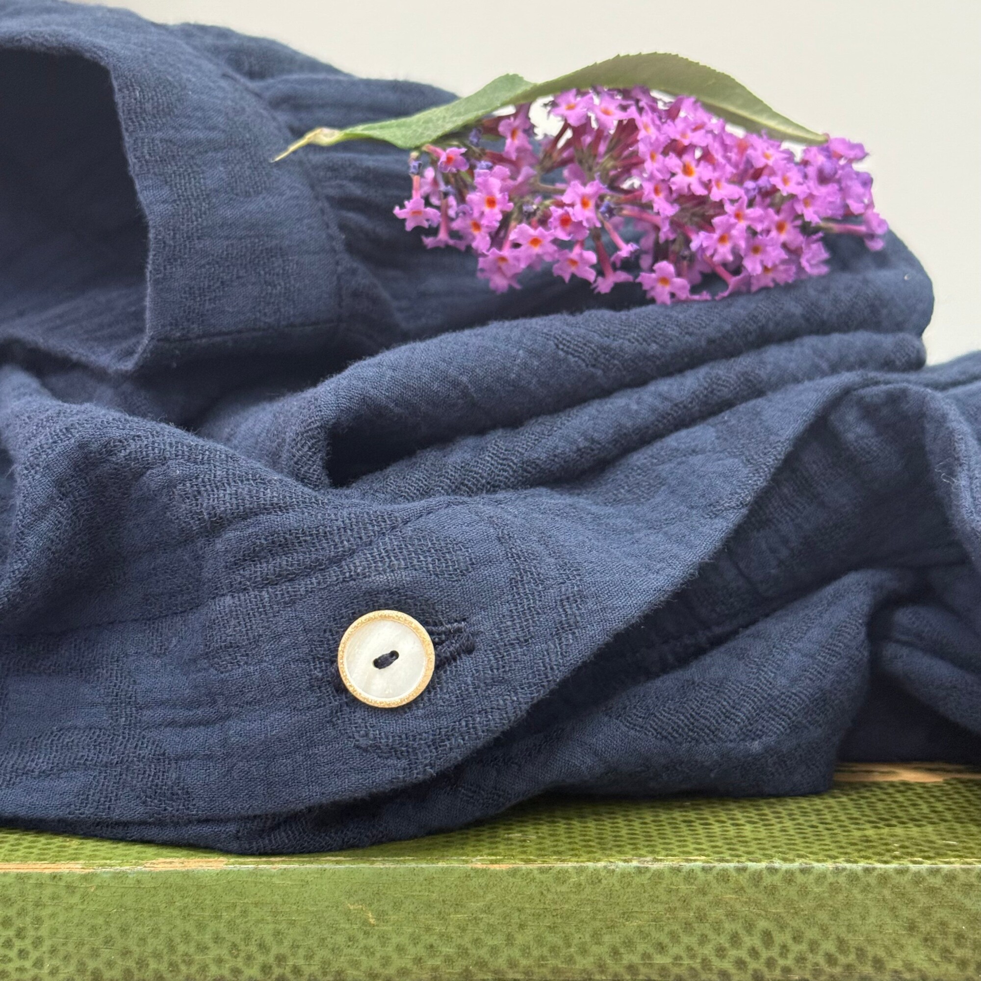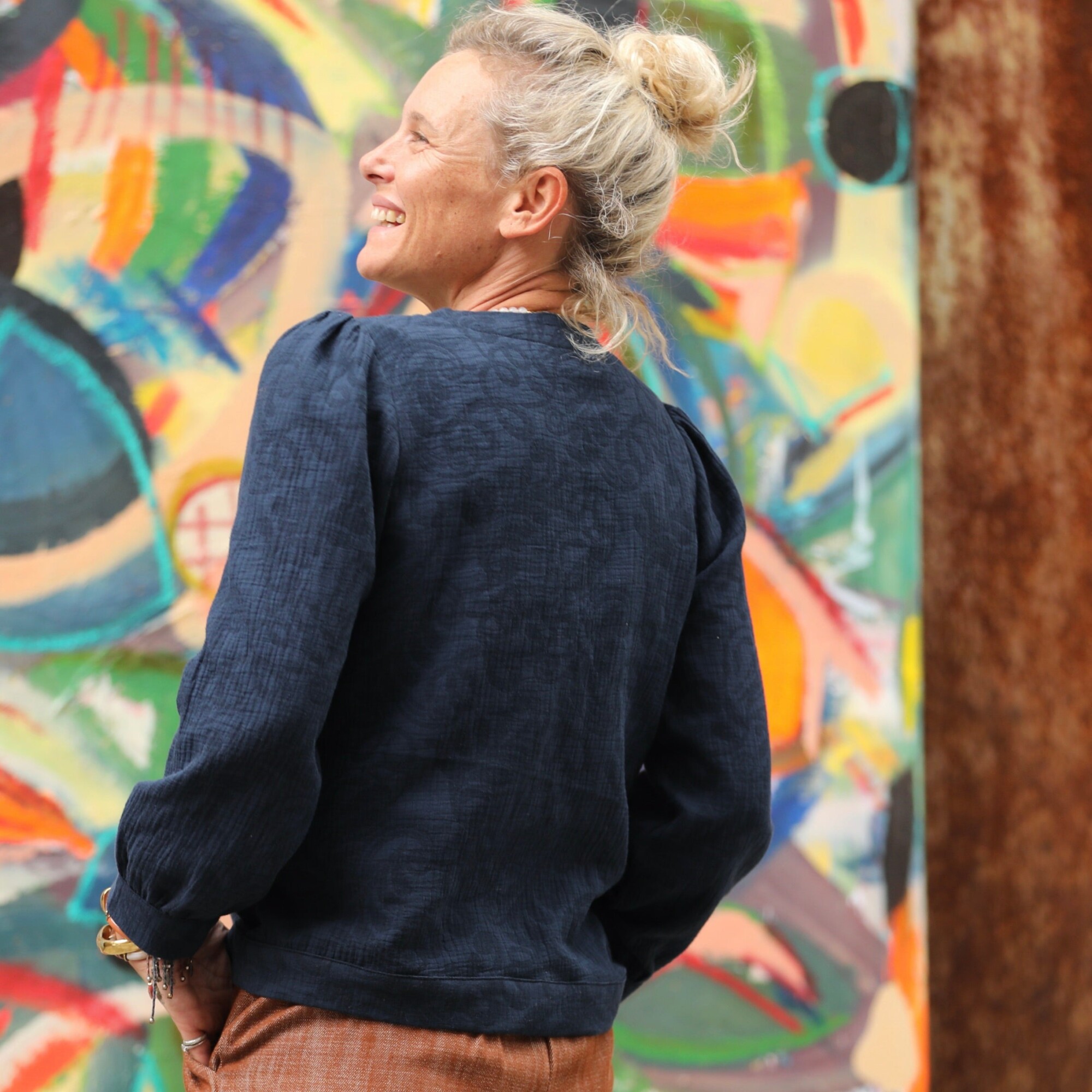 Blouse Léocadie - Double gaze de coton/lin jacquard fleuri marine