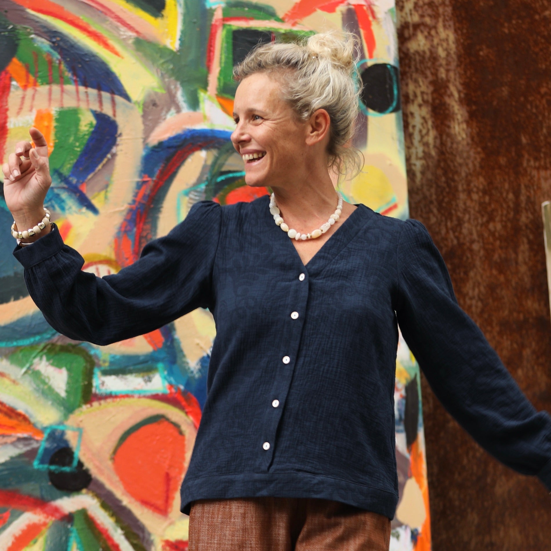 Coupe La Blouse Léocadie se distingue par une coupe fluide et élégante. Son col V discret, sa bande à la taille qui crée de l’ampleur et ses emmanchures confortables lui apportent féminité et aisance au quotidien.