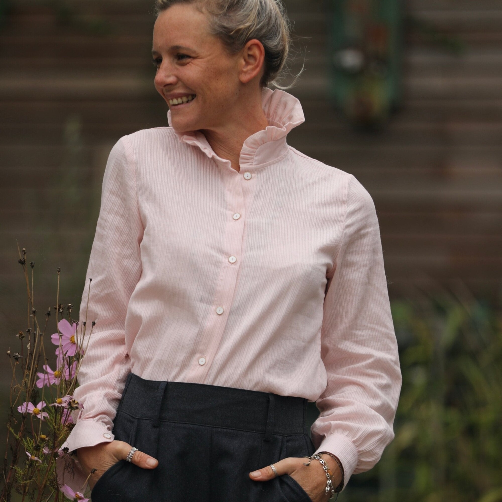 Blouse Marthe - Dobby de coton tressé rose poudré