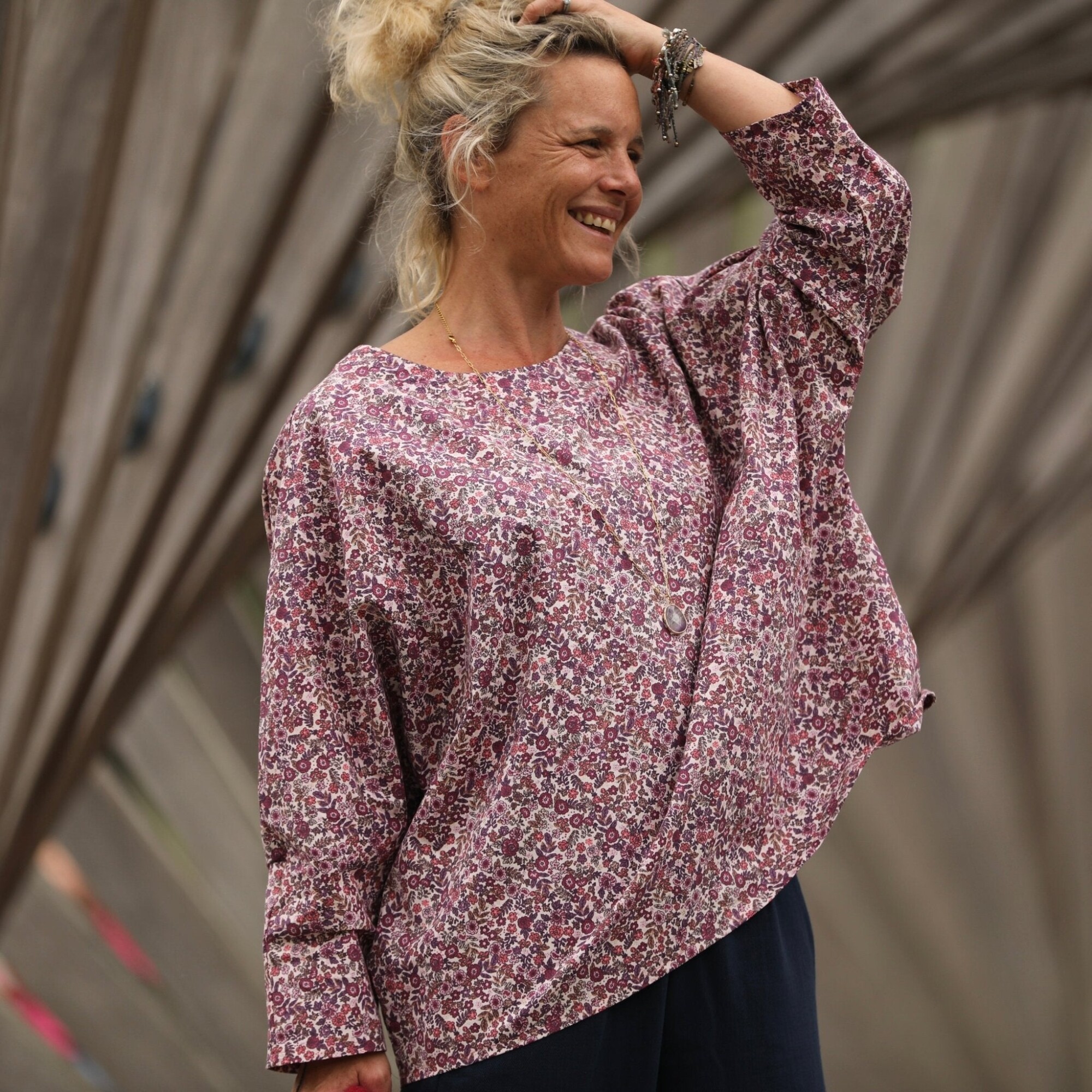 Naomie est une blouse raffinée au charme inspiré de l’esthétique japonaise. Sa silhouette généreuse la rend idéale pour toutes les morphologies, du XS au XXL, elle peut se porter avec de l'ampleur pour un effet décontracté.