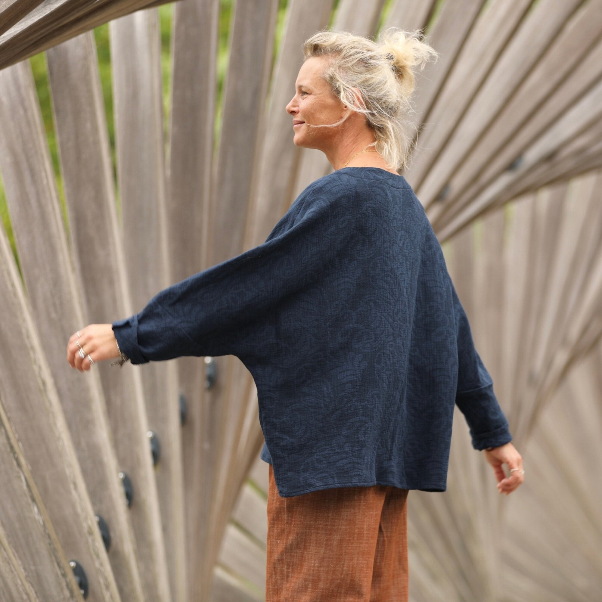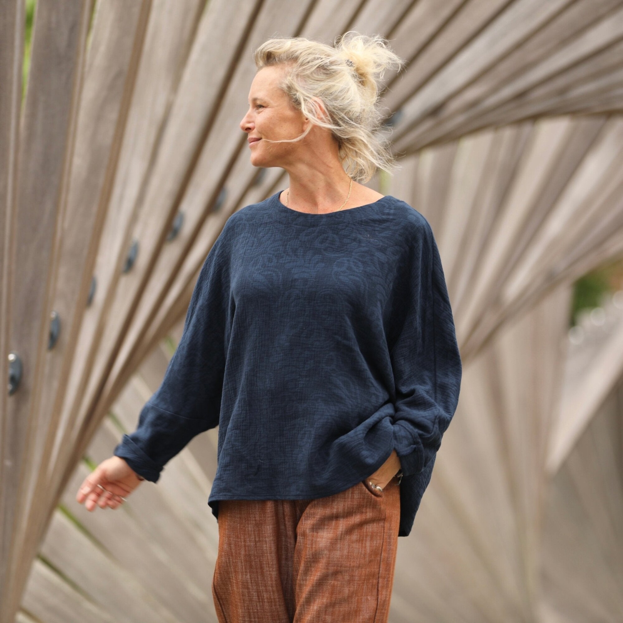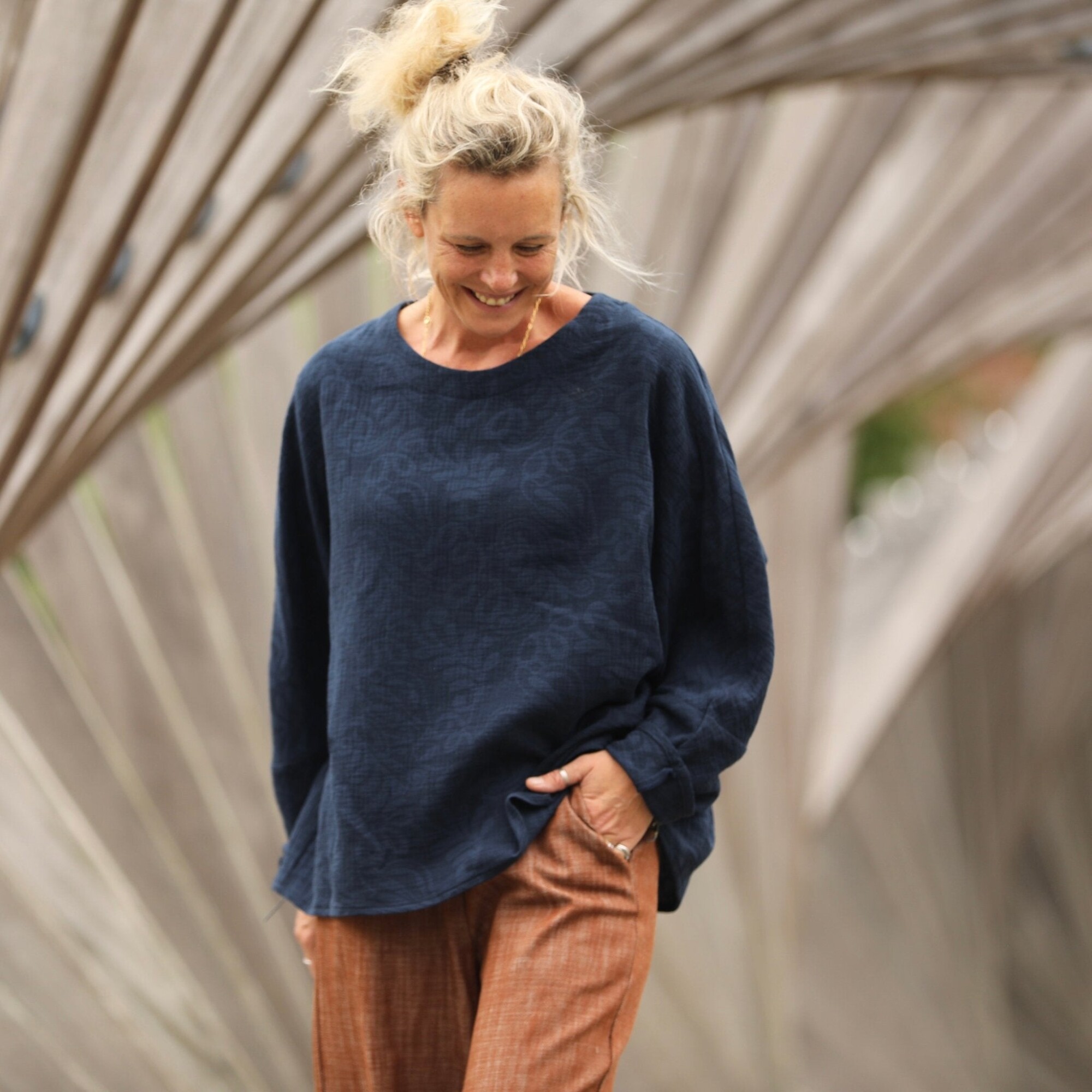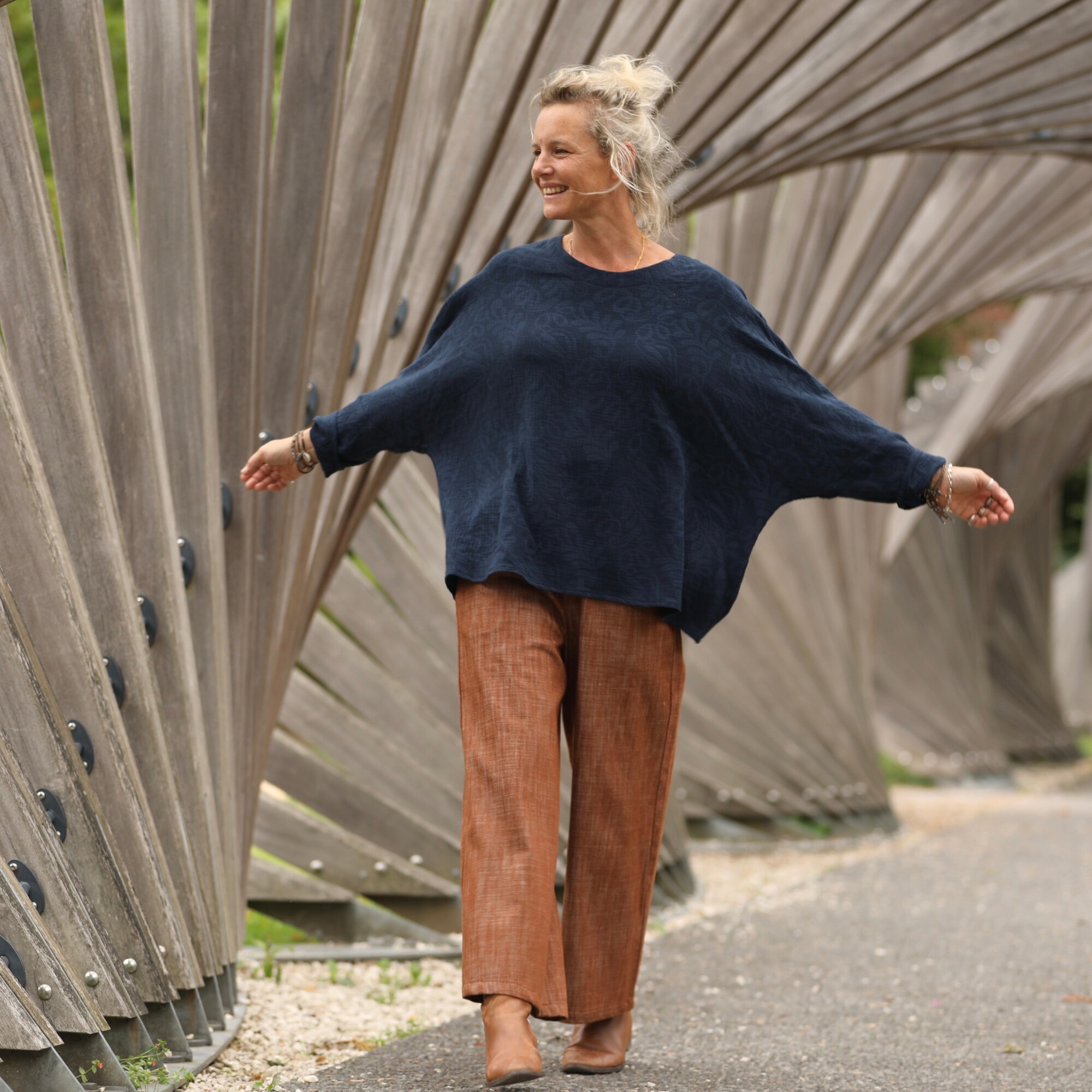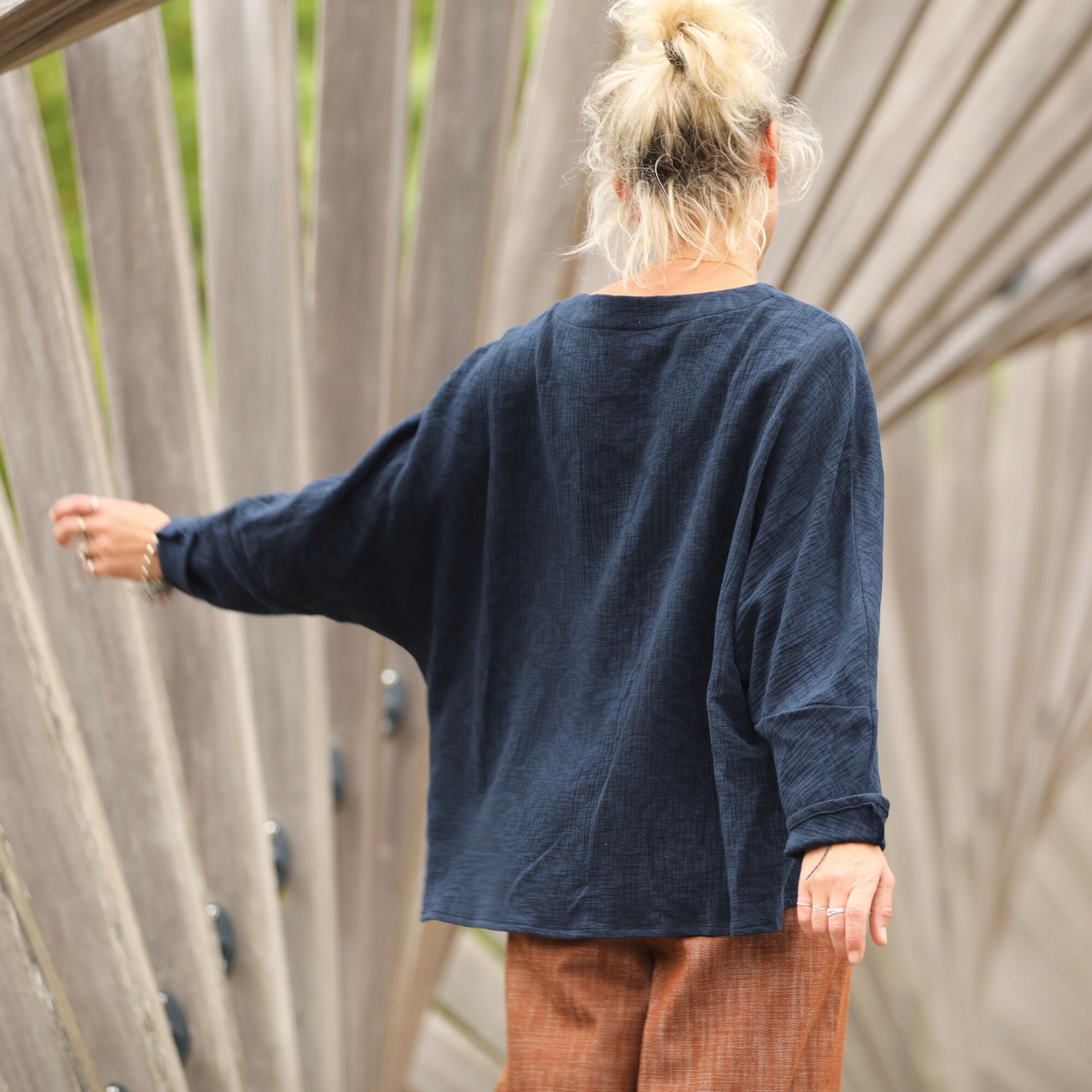 Naomie est une blouse raffinée au charme inspiré de l’esthétique japonaise. Sa silhouette généreuse la rend idéale pour toutes les morphologies, du XS au XXL, elle peut se porter avec de l'ampleur pour un effet décontracté.